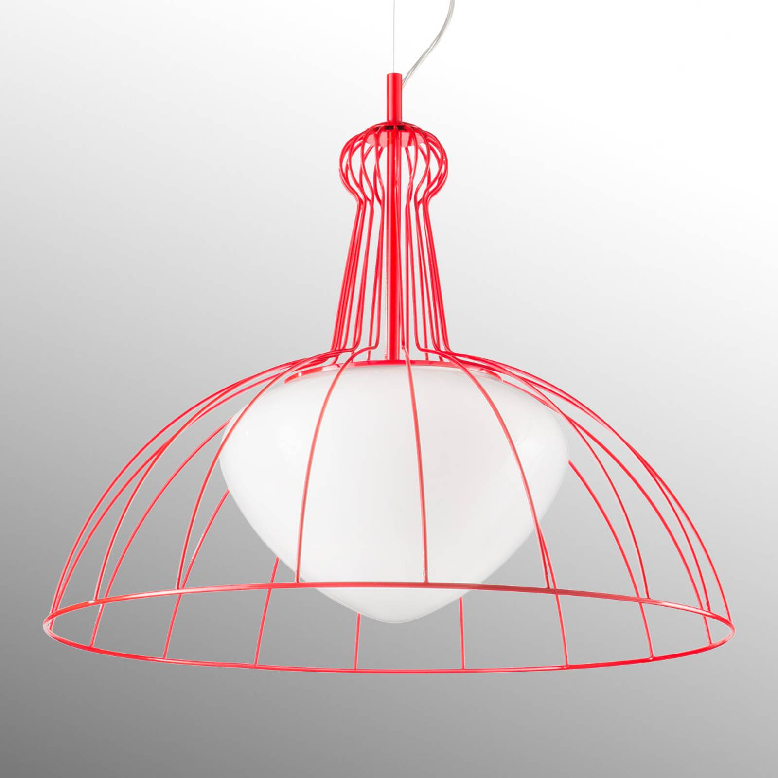 Siru Červené designové závěsné světlo Lab made in Italy, Obývací pokoj / jídelna, nerez, sklo, E27, 75W, K: 42cm
