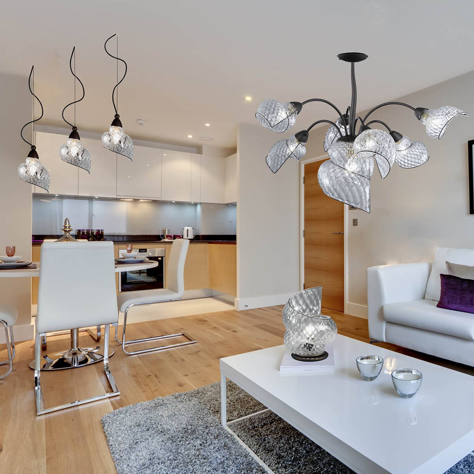 Siru Stropní světlo FLORA, ručně vyrobené, 6zdrojové, Obývací pokoj / jídelna, nerez, sklo, G9, 60W, P: 45 cm, L: 74 cm, K: 25cm