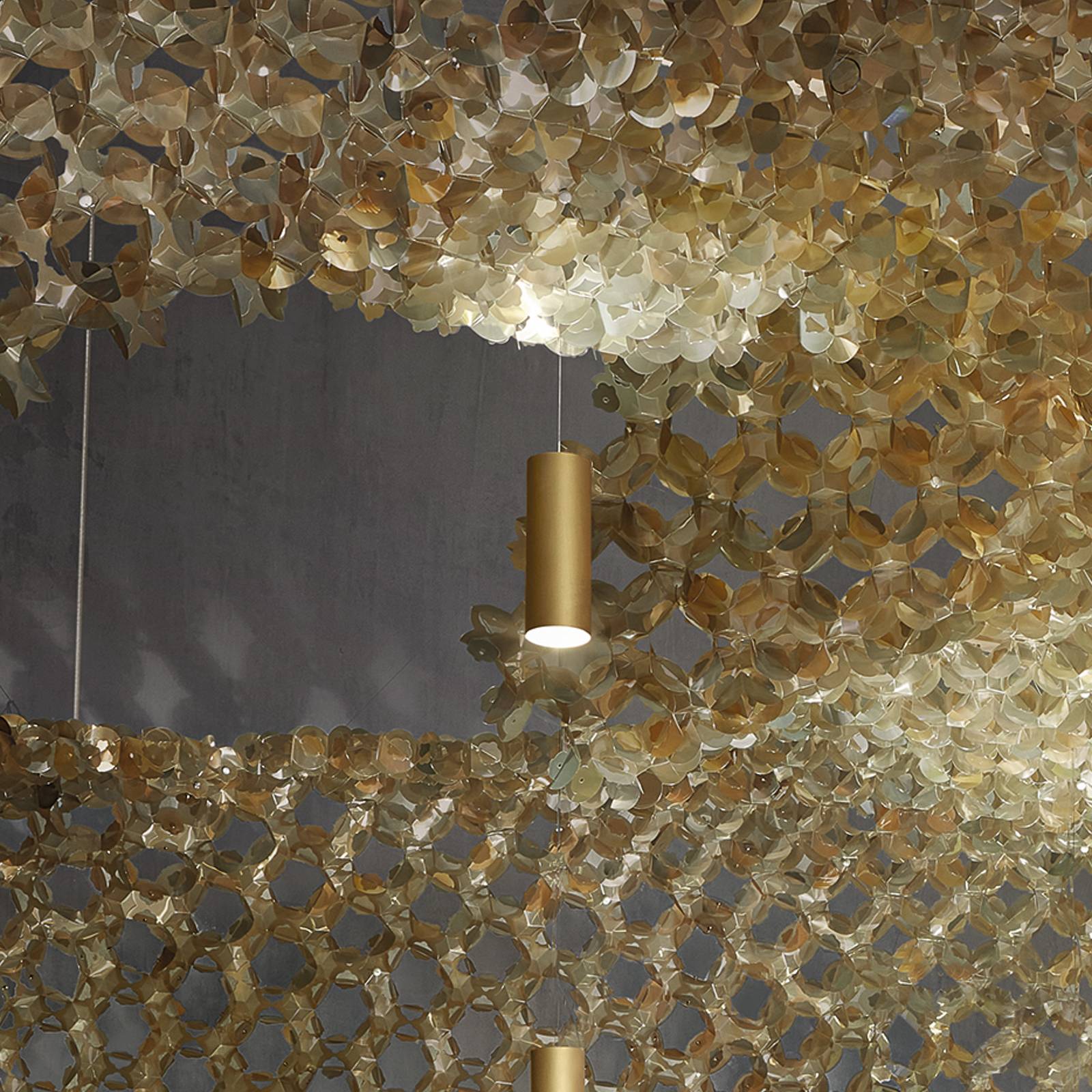 Slamp Nuvem závěsné světlo, lze rozšířit, zlatá, Obývací pokoj / jídelna, Opalflex®, Lentiflex®, GU10, 8W, K: 6cm