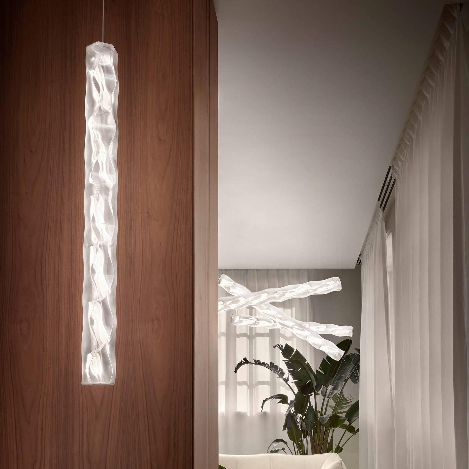 Slamp Hugo White LED designové závěsné světlo, Obývací pokoj / jídelna, Lentiflex®, 20W, P: 100 cm, L: 9 cm