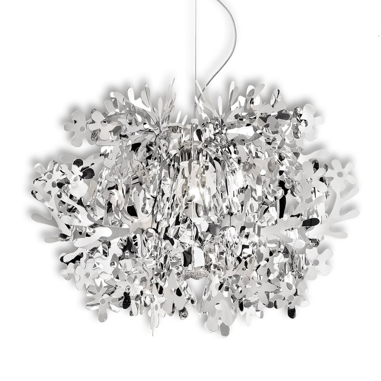 Slamp Fiorella – závěsné světlo, stříbrné, Obývací pokoj / jídelna, Steelflex®, E27, 40W, K: 37.5cm