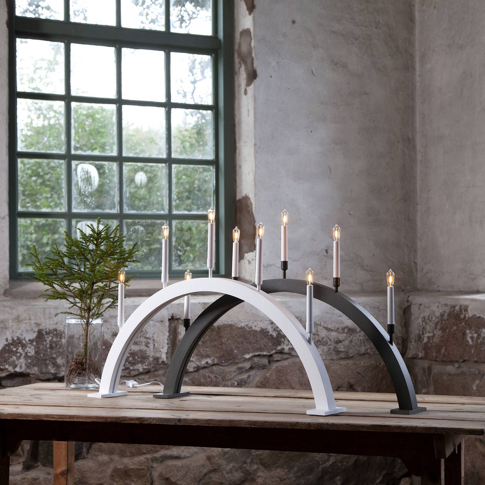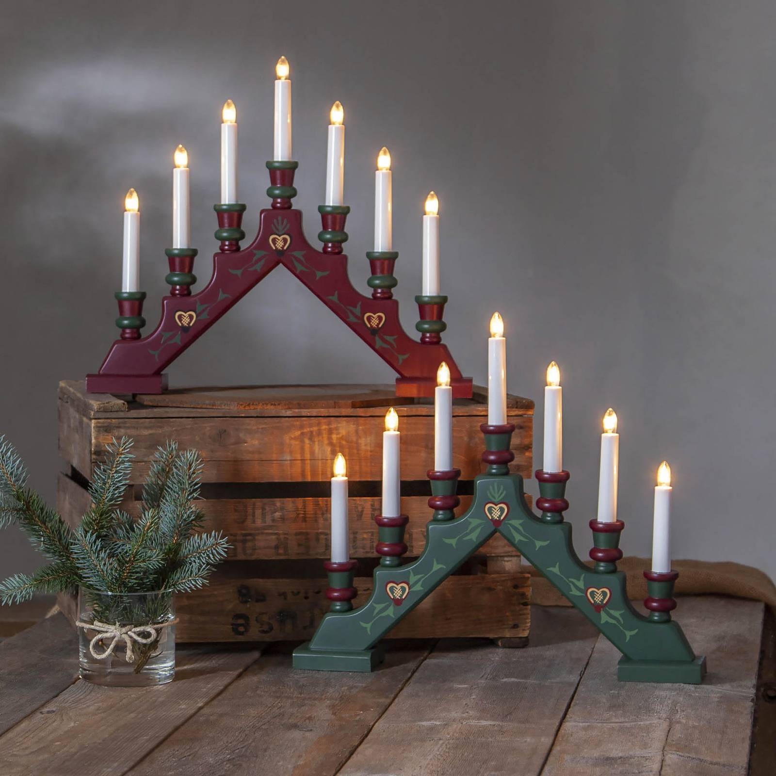 STAR TRADING Sedmiplamenný oblouk červené svíčky Sara Tradition, Dřevo, plast, E10, 3W, L: 43 cm, K: 38cm