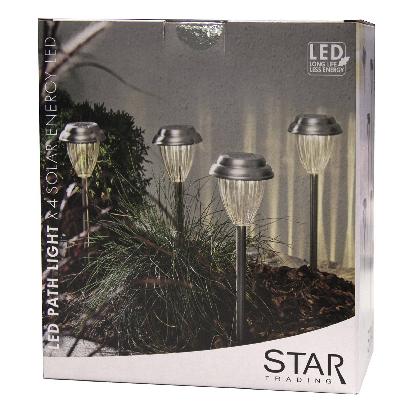 STAR TRADING LED solární soklové světlo Palma v sadě 4 ks, nerez, plast, 0.06W, K: 28cm