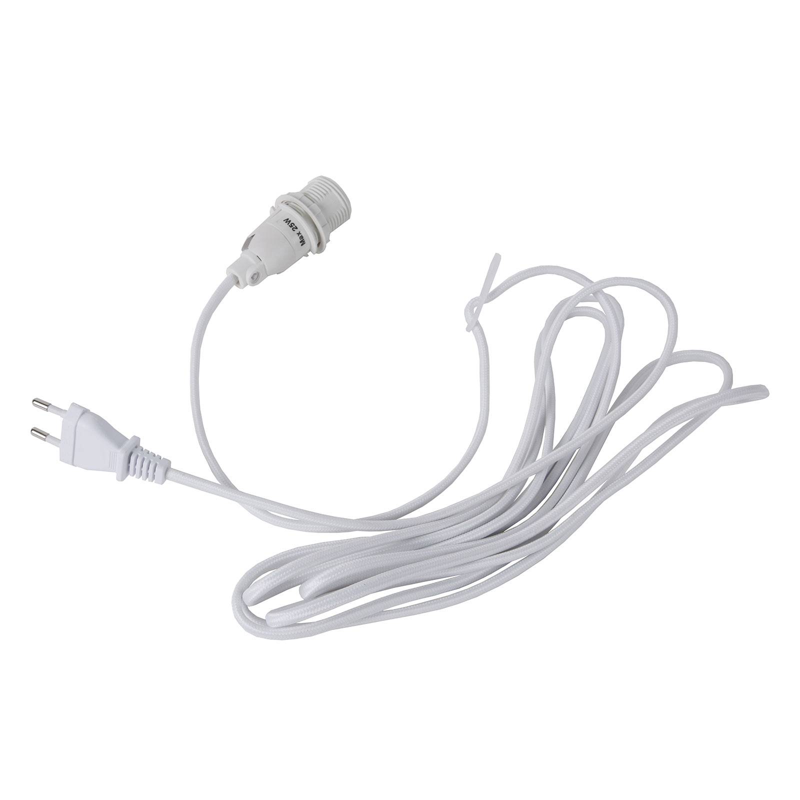 STAR TRADING Zásuvka E14 Lacy s kabelem, bílá, Plast, textil, E14, P: 350 cm