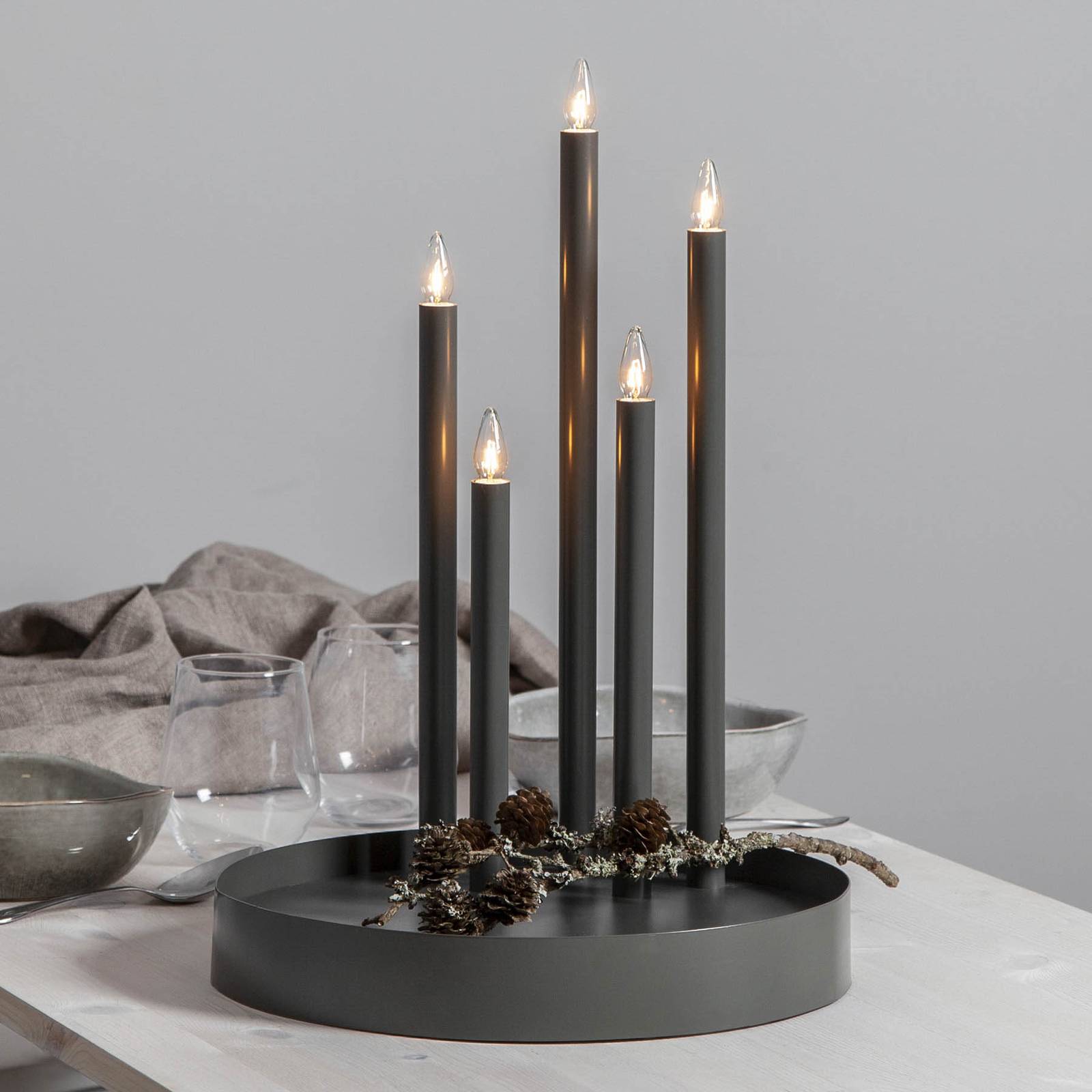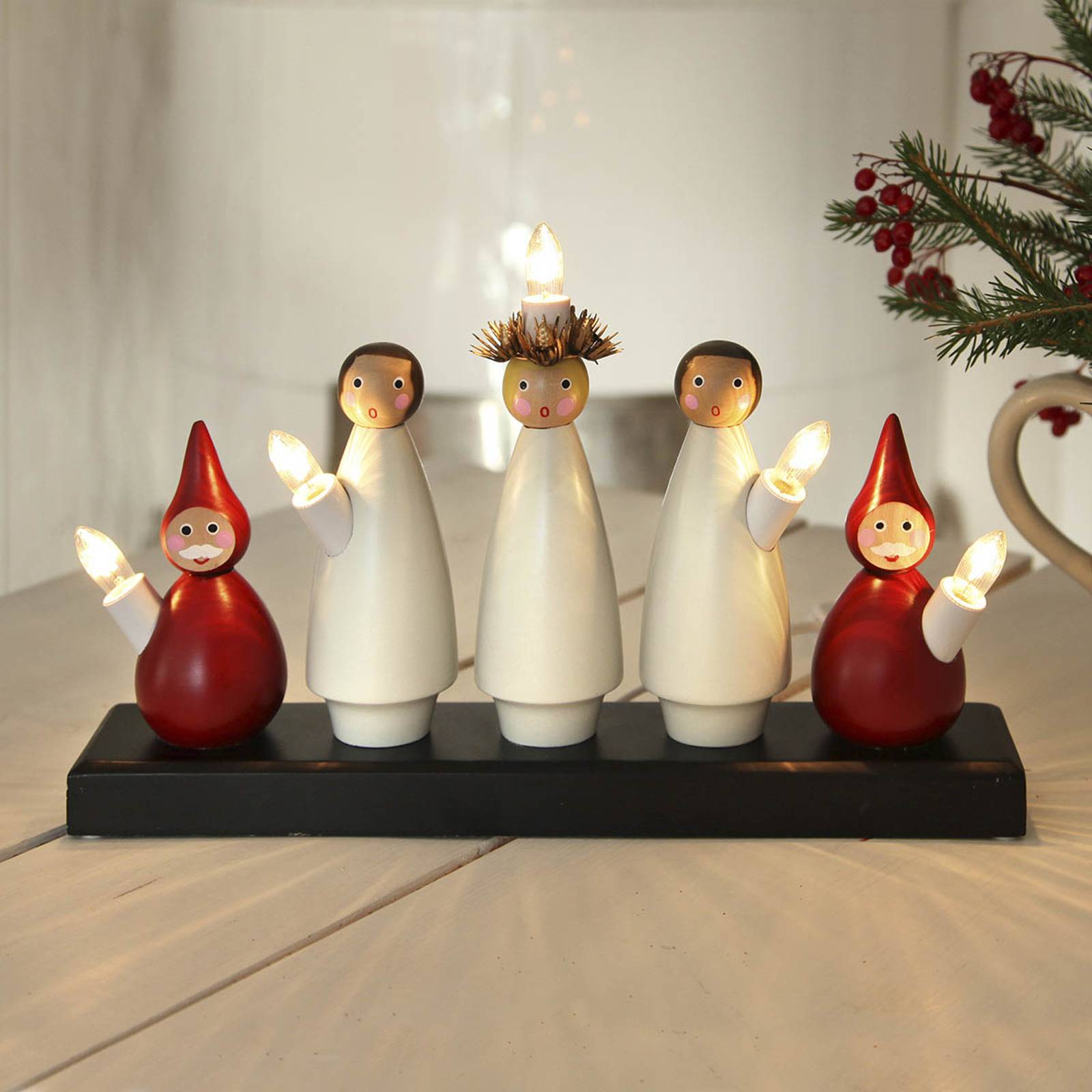STAR TRADING Svíčkový lustr Gustavo s motivem chóru, 5 zdrojů, Obývací pokoj / jídelna, dřevo, plast, E10, 3W, L: 33 cm, K: 22cm