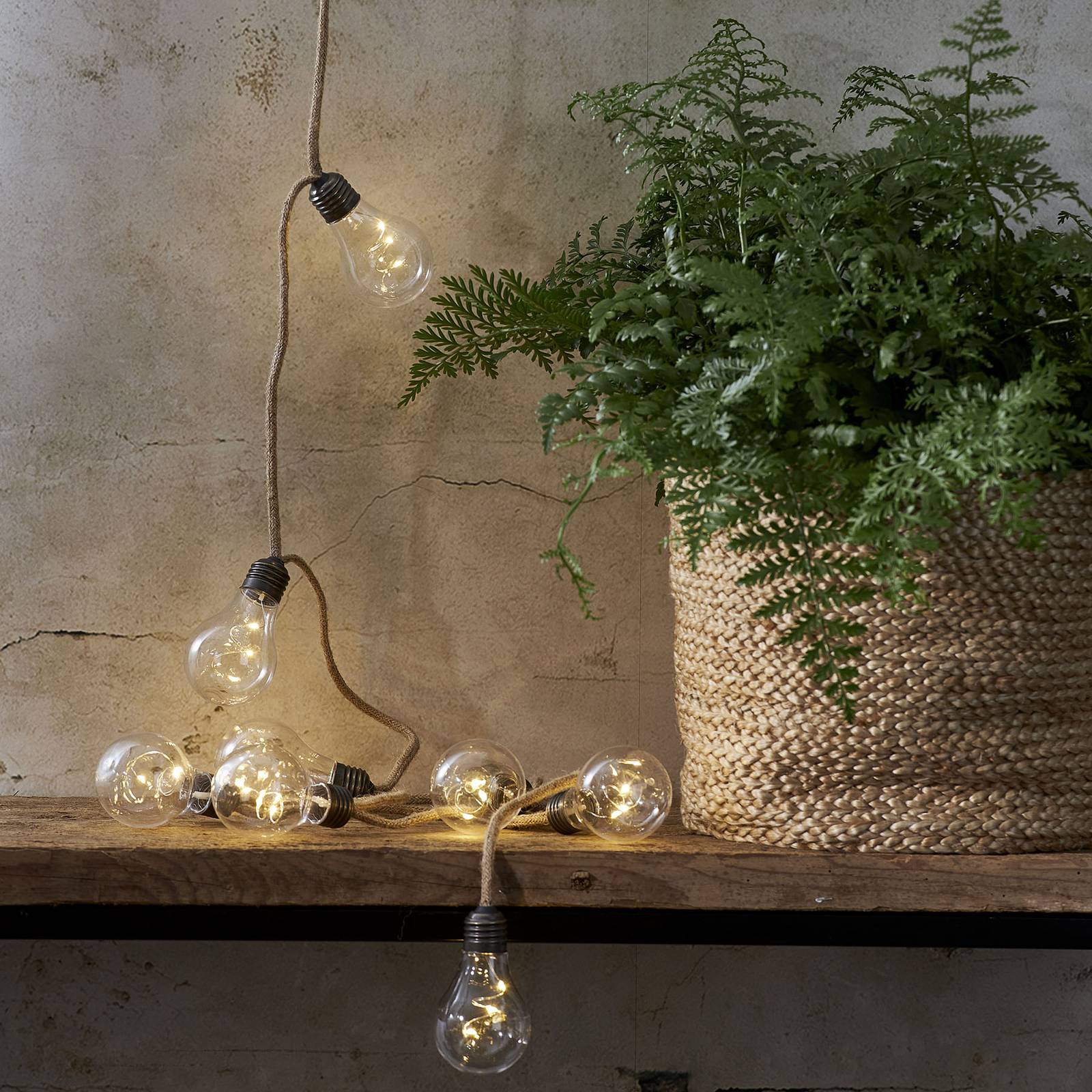 STAR TRADING Jutta světelný řetěz bateriový provoz 10 žárovek, jutové lano, 1.8W, P: 225 cm
