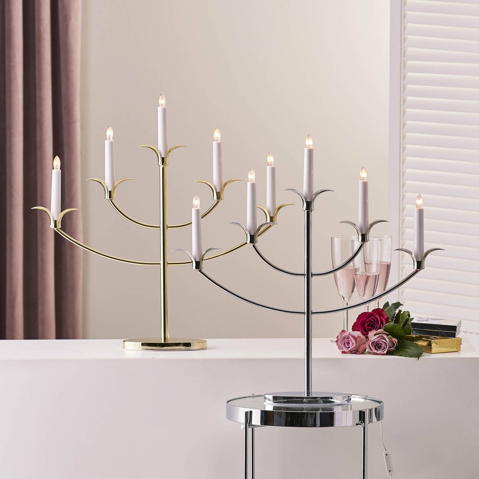STAR TRADING Svícen Circum, rovný, 7 plamenů, šedohnědý, Kov, E10, 3W, L: 58 cm, K: 29cm