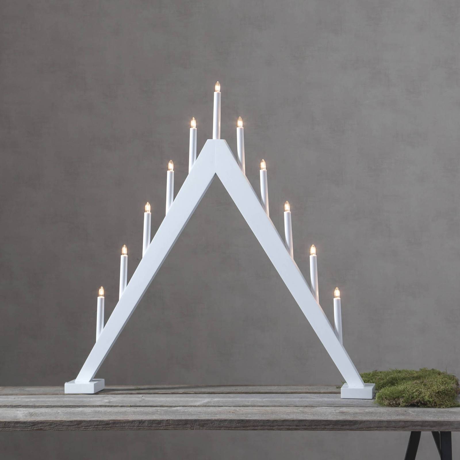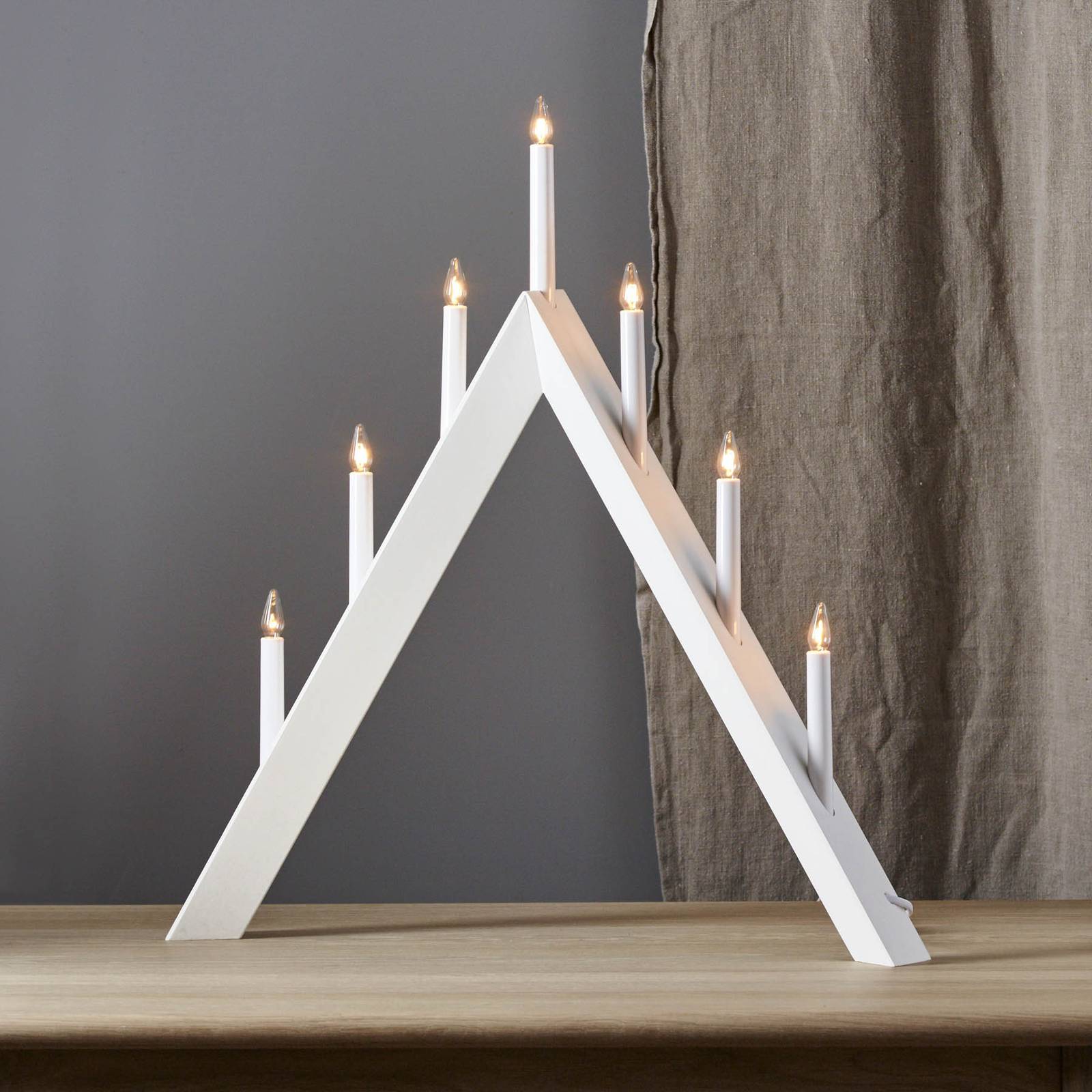 STAR TRADING Svícen Šíp, špičatý, 7 plamenů, bílý, Dřevo, E10, 3W, L: 60 cm, K: 64.5cm