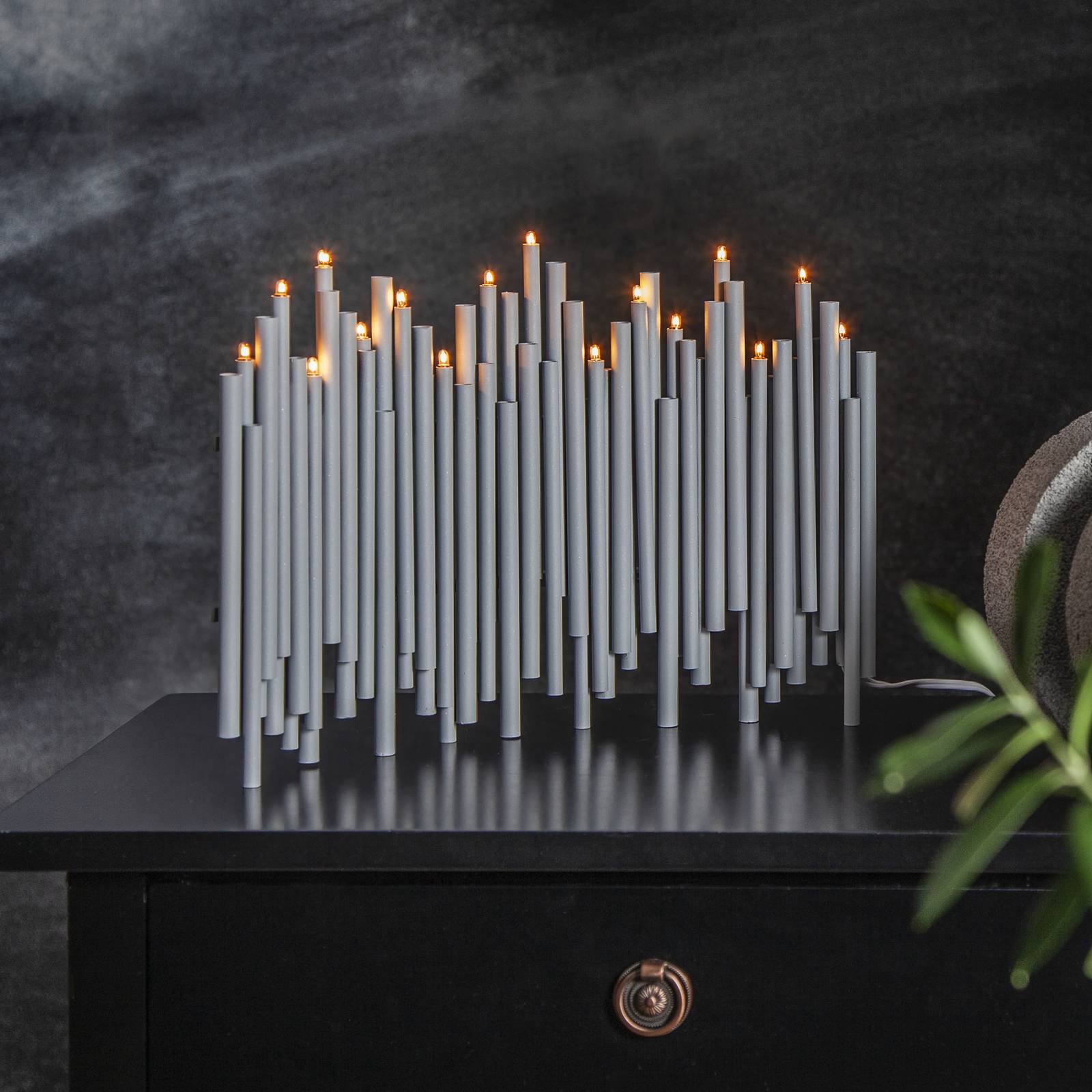 STAR TRADING Svíčkový lustr Note, 16 zdrojů, šedá, kov, E5, 0.6W, L: 35 cm, K: 25cm