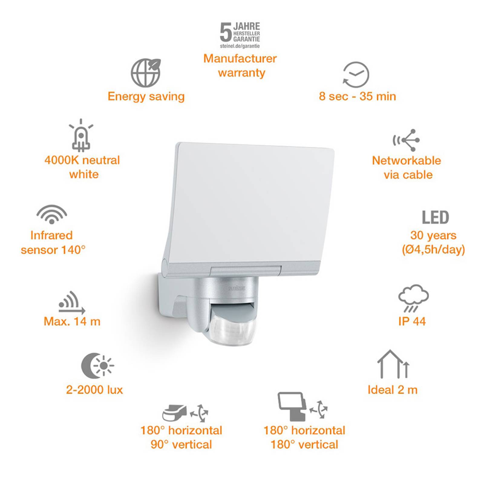 STEINEL XLED Home 2 S venkovní spot senzor stříbro, plast, 13.7W, Energetická třída: E, L: 18 cm, K: 21.8cm