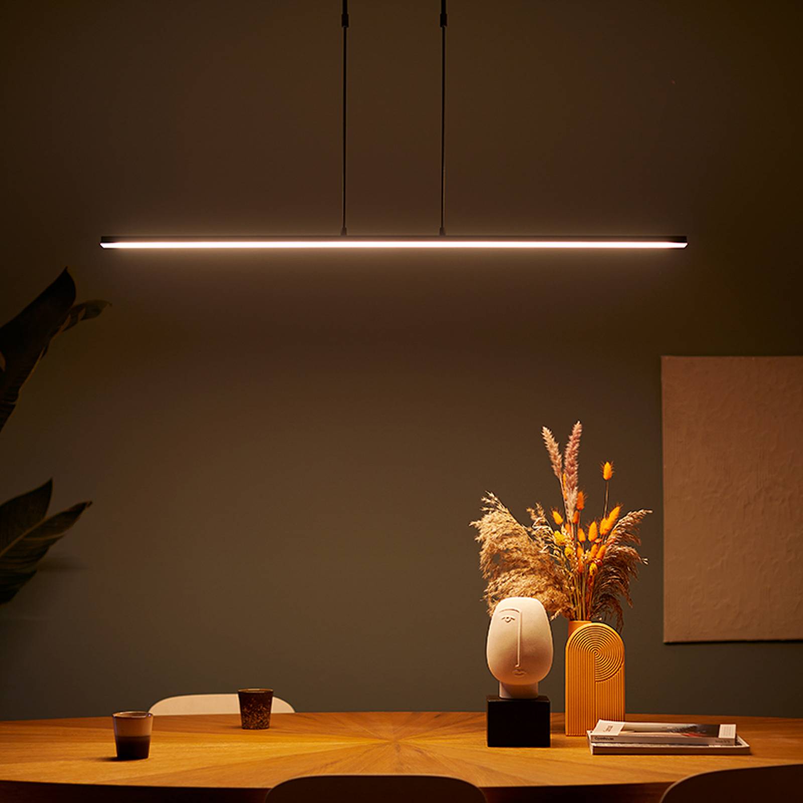 Steinhauer LED závěsné světlo Zelena černá, Obývací pokoj / jídelna, ocel, plast, 25W, P: 122 cm, L: 9.5 cm, K: 2cm