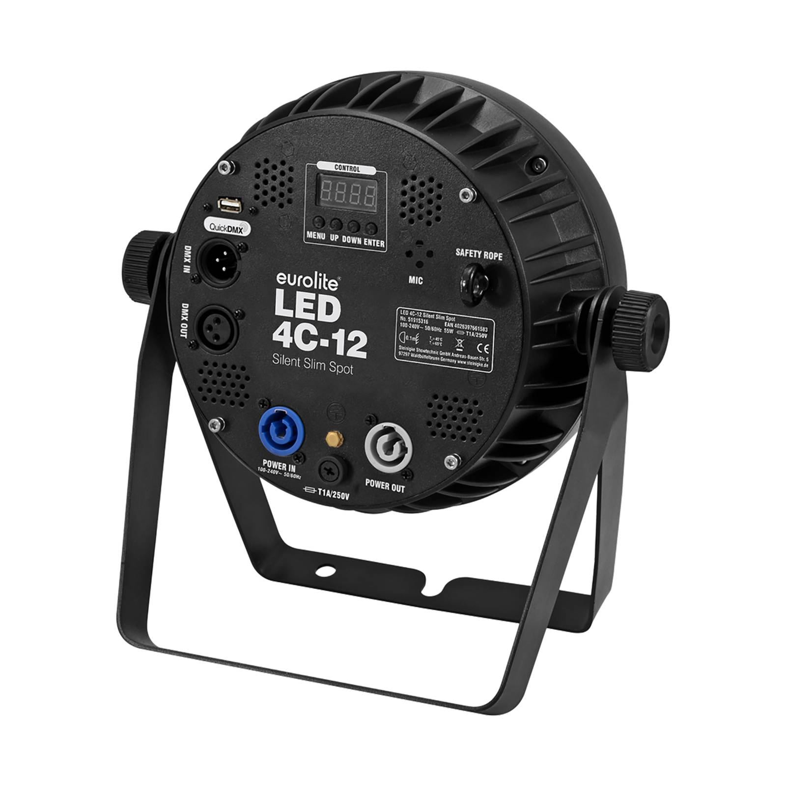 Steinigke Showtechnic EUROLITE LED 4C-12 Silent Slim Spot reflektor, kov, 8W, L: 28.5 cm, K: 29.5cm