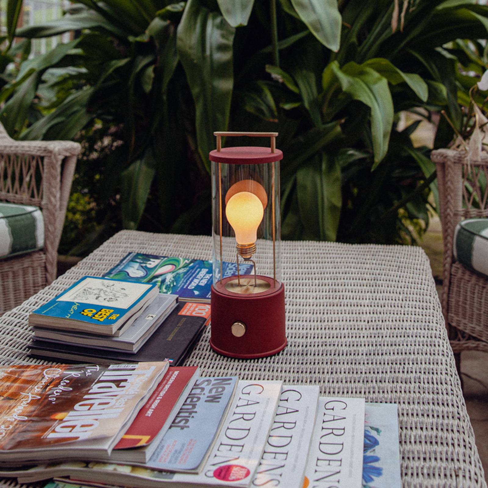 Tala Dobíjecí stolní lampa Muse Portable, červená, hliník, E27 LED, Obývací pokoj / jídelna, Hliník, mosaz, E27, 6W, L: 13.5 cm, K: 33.8cm
