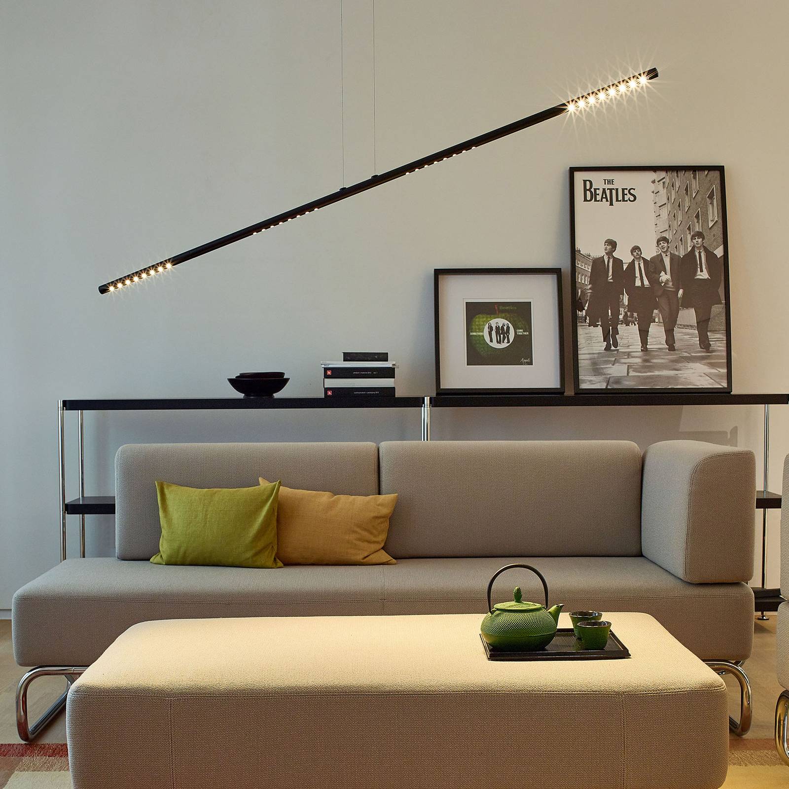TECNOLUMEN LUM L závěsné svítidlo, 135 cm, černé, Obývací pokoj / jídelna, Hliník, ocel, 8W, P: 135 cm, L: 2 cm, K: 2cm