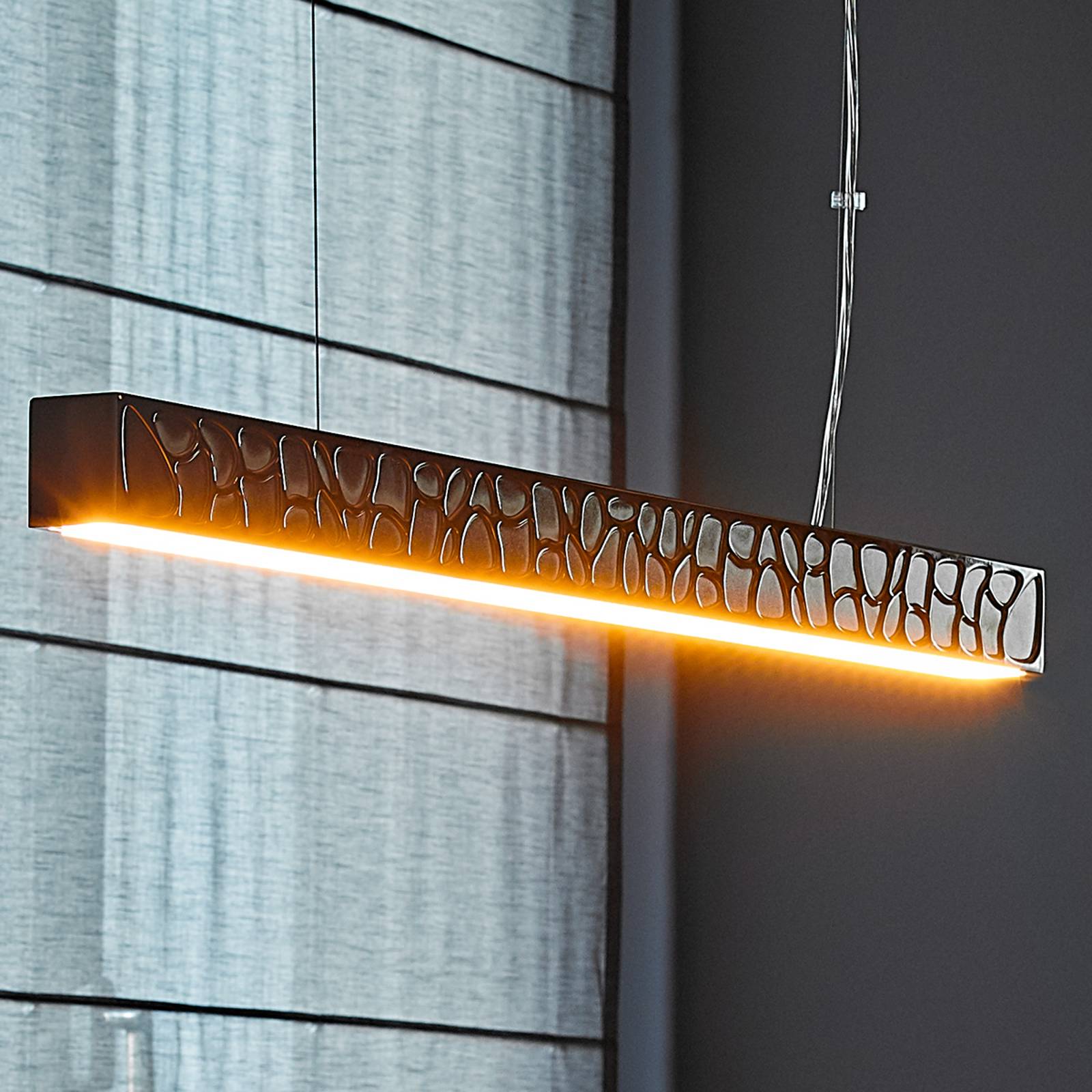 TECNOLUMEN Theia LED závěsné světlo, stmívatelné, nikl, Obývací pokoj / jídelna, Hliník, plast, 17W, P: 90 cm, L: 5 cm, K: 6.5cm