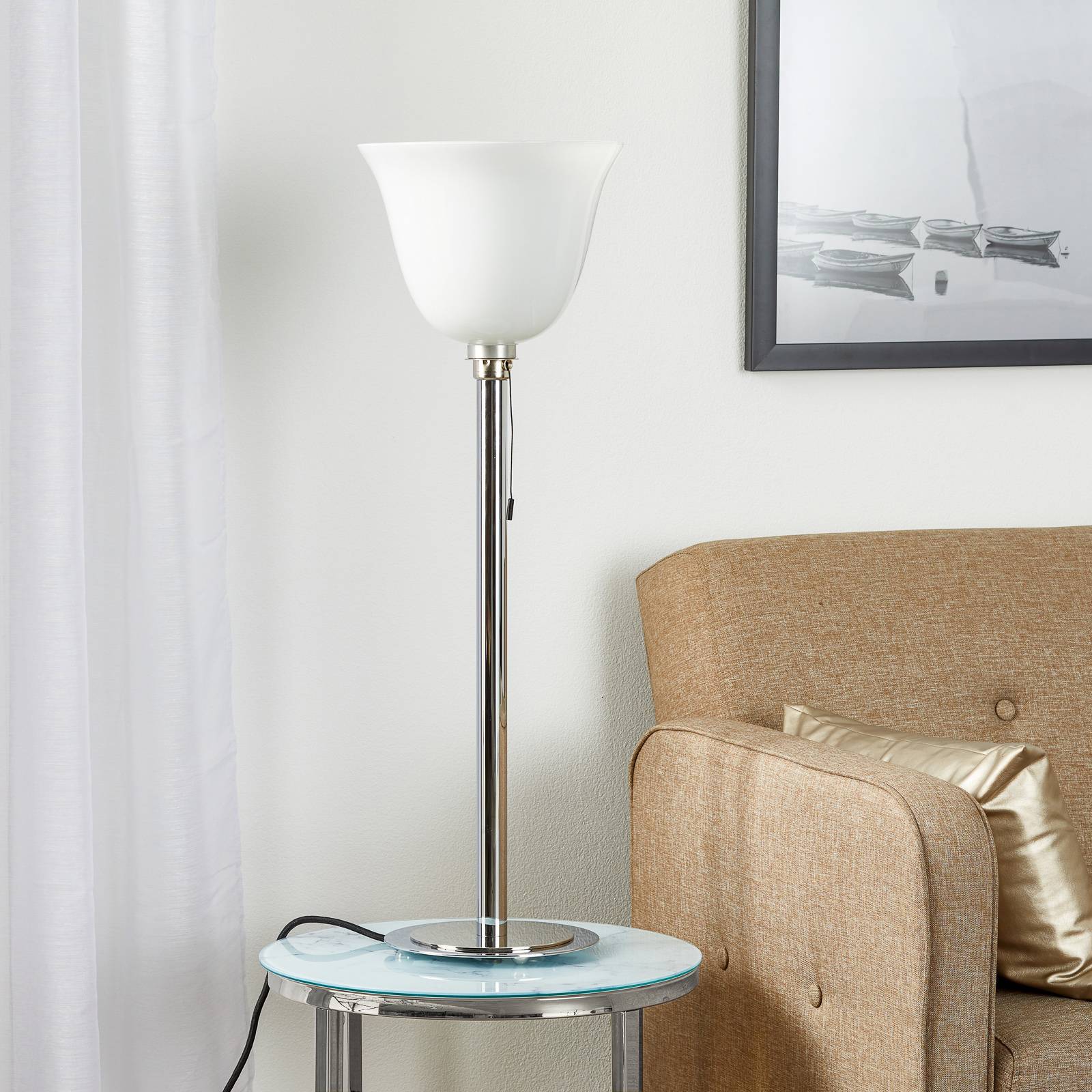 TECNOLUMEN – francouzská stojatá lampa Art-Deco, Obývací pokoj / jídelna, kov, sklo, E27, 100W, K: 78cm
