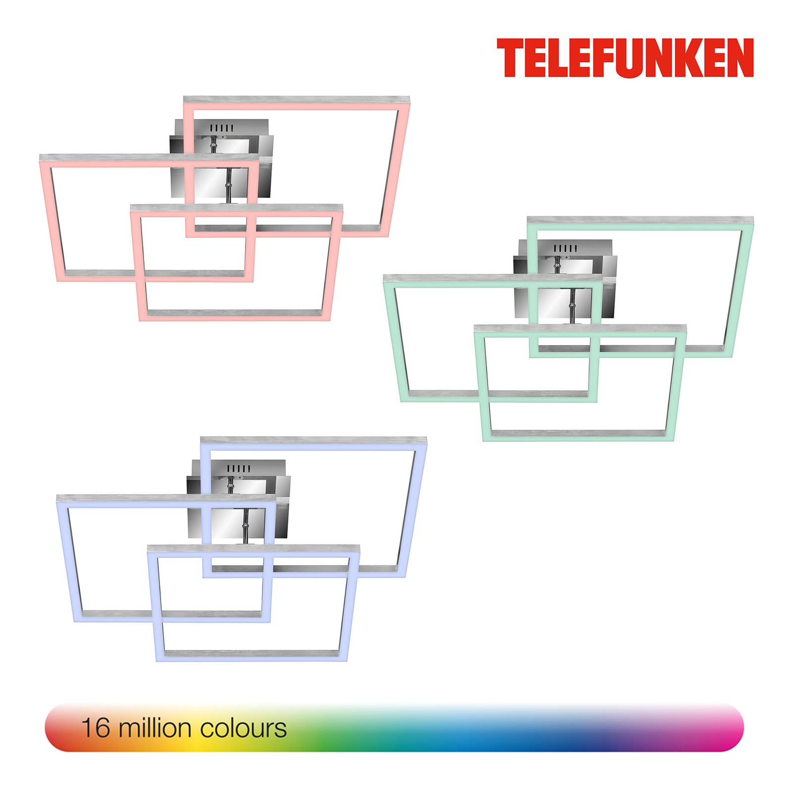 Telefunken LED stropní svítidlo Frame RGBW smart ovládání 55W, Kuchyň, kov, plast, 55W, P: 72.4 cm, L: 72.4 cm, K: 9.2cm