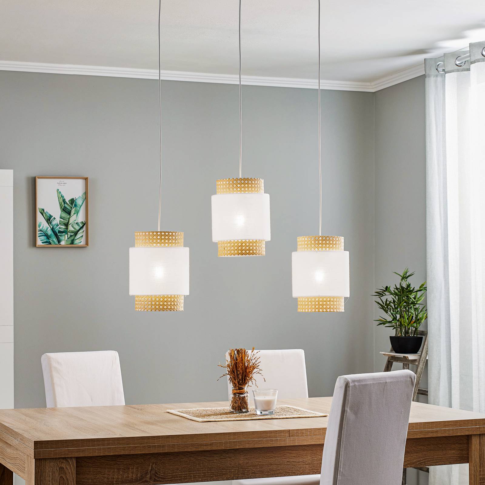TK Lighting Boho lineární závěsné svítidlo třísvětelné bílé/ratan, Obývací pokoj / jídelna, Ratan, látka, kov, plast, E27, 60W, P: 80 cm, L: 20 cm