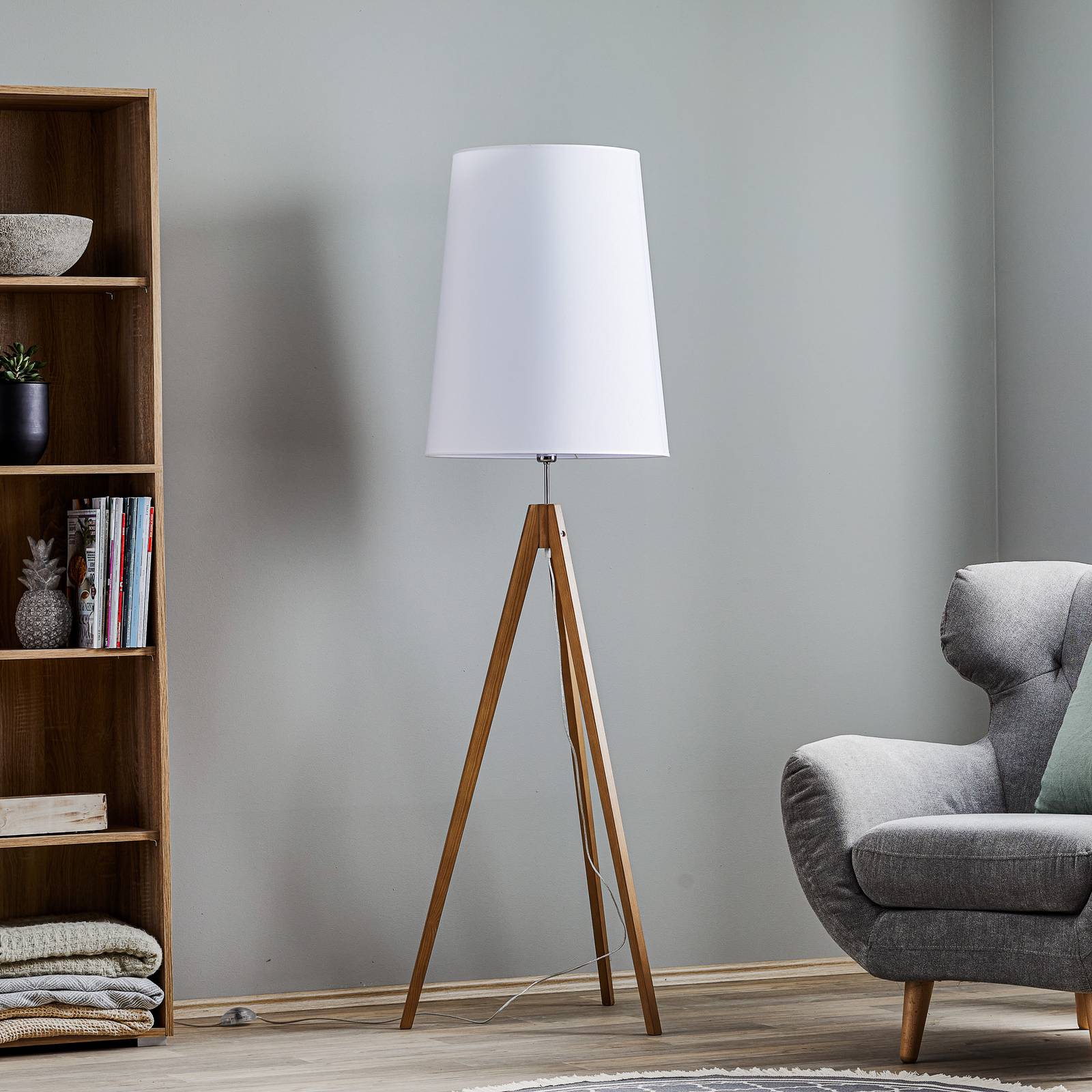 TK Lighting Stojací lampa Walz, stativový rám, bílé stínidlo, Obývací pokoj / jídelna, Textil, dřevo (borovice), E27, 25W, K: 177cm