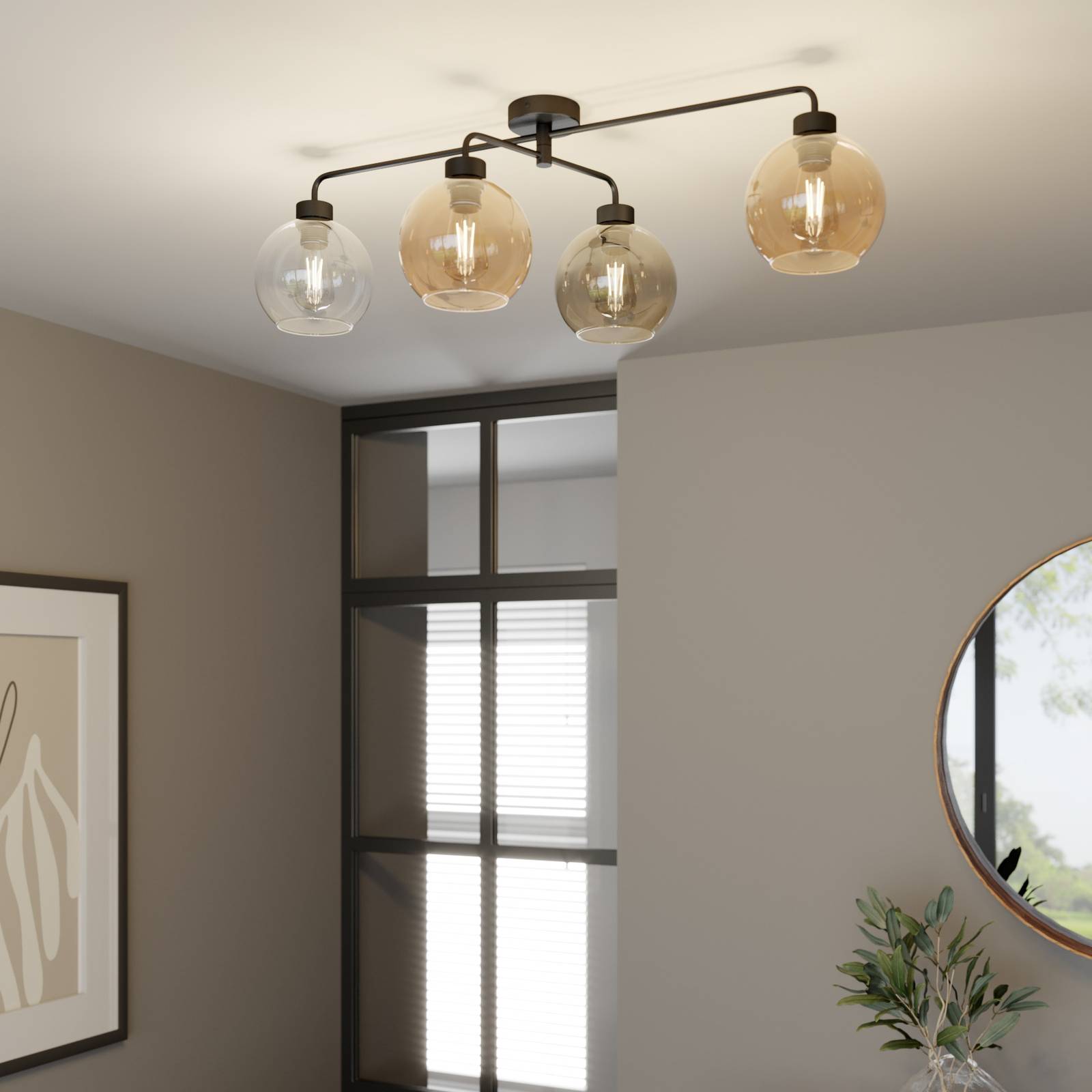 TK Lighting Stropní svítidlo Cubus čtyřsvětelné čiré/jantarové/šedé, Obývací pokoj / jídelna, Sklo, kov, E27, 60W, P: 100 cm, L: 50 cm, K: 31cm