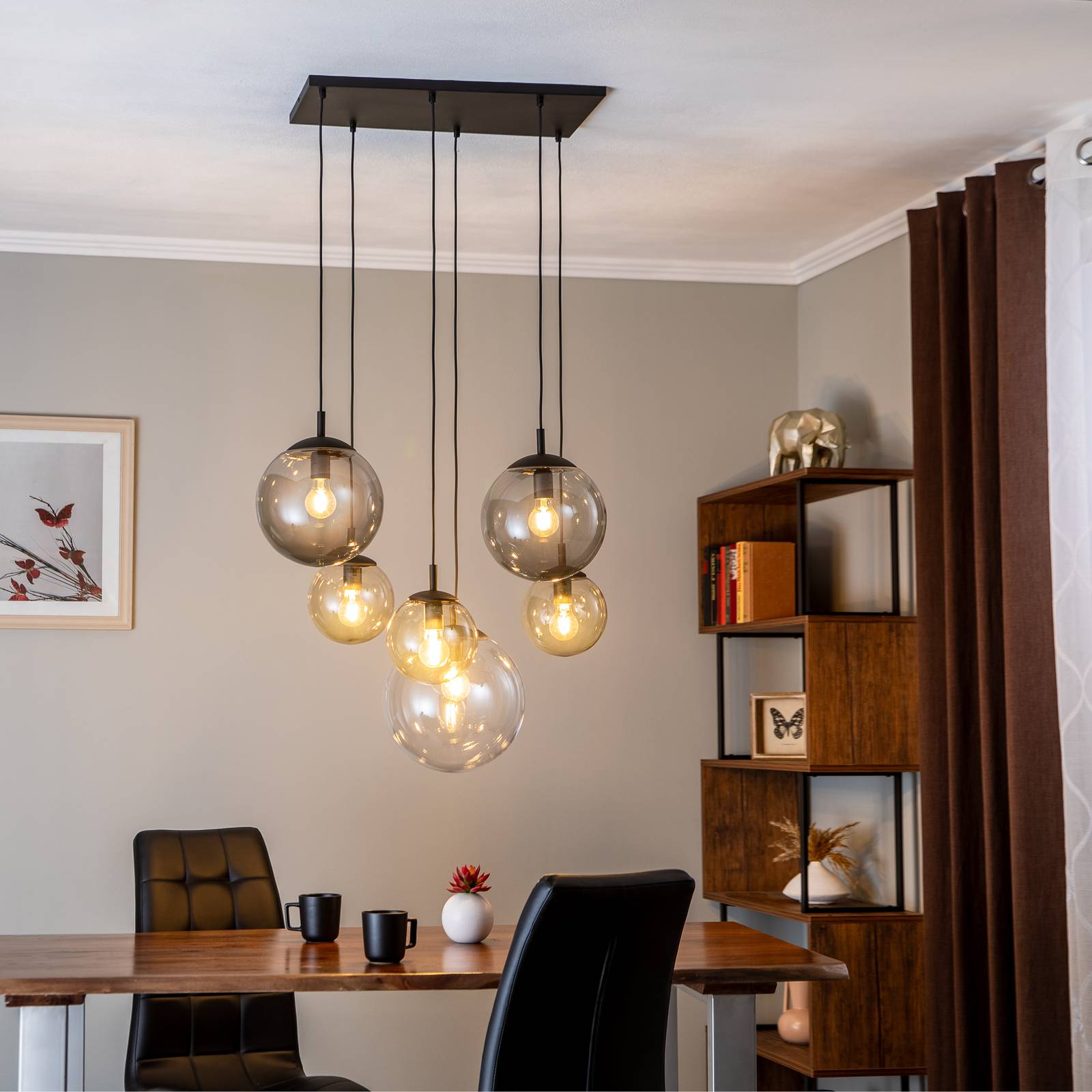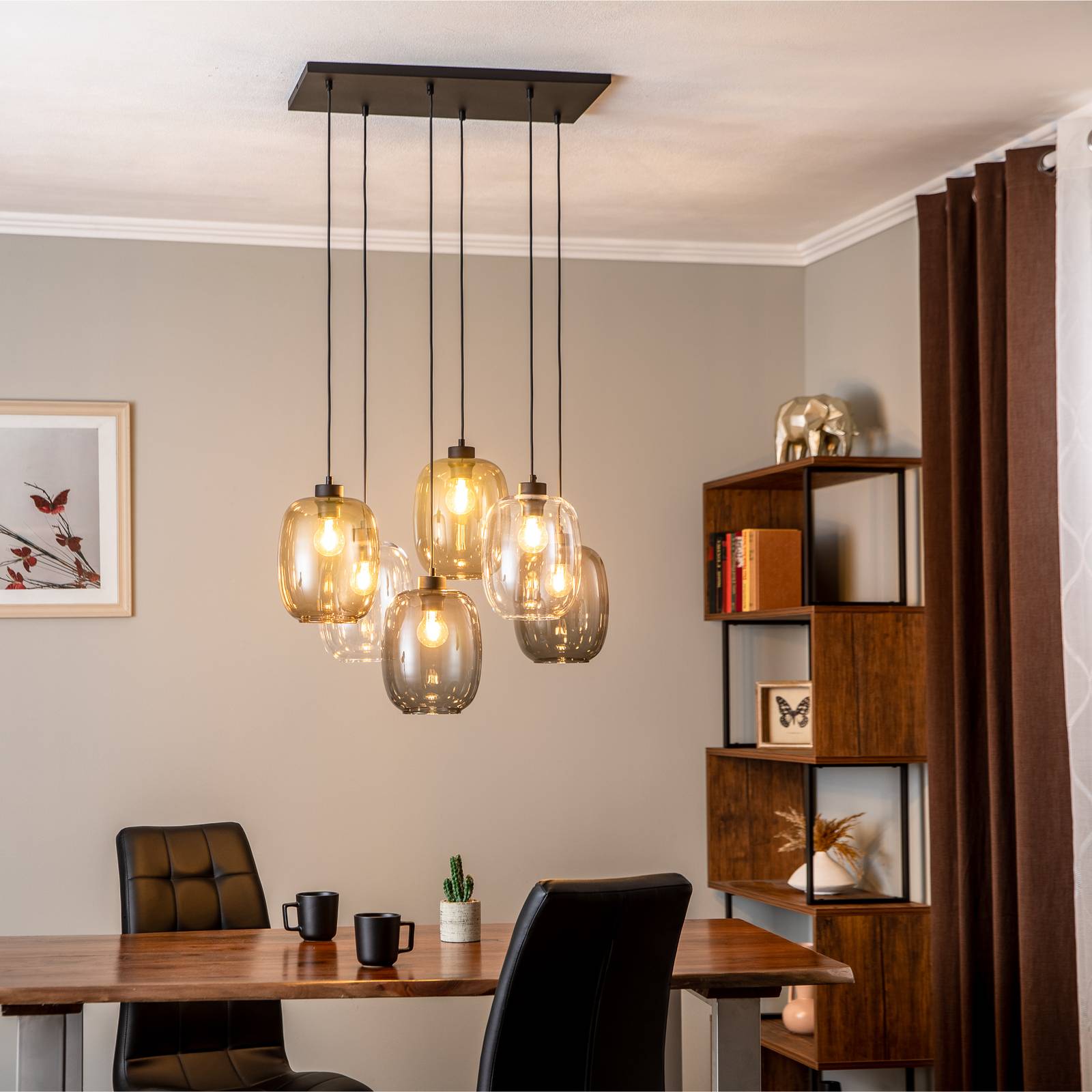 TK Lighting Závěsné svítidlo Esme, sklo, vícebarevné, 6 světel, obdélníkové, Obývací pokoj / jídelna, Sklo, ocel, E27, 15W, P: 77 cm, L: 47 cm