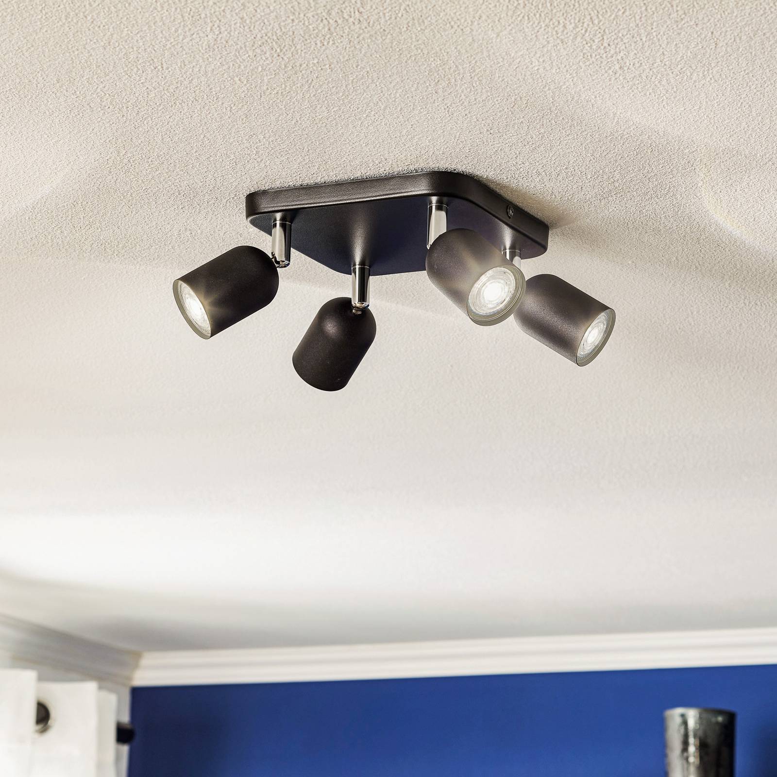 TK Lighting Stropní bod Top, čtyřplamenný, čtvercový černý, Ložnice, Kov, GU10, 10W, P: 30 cm, L: 30 cm, K: 14cm