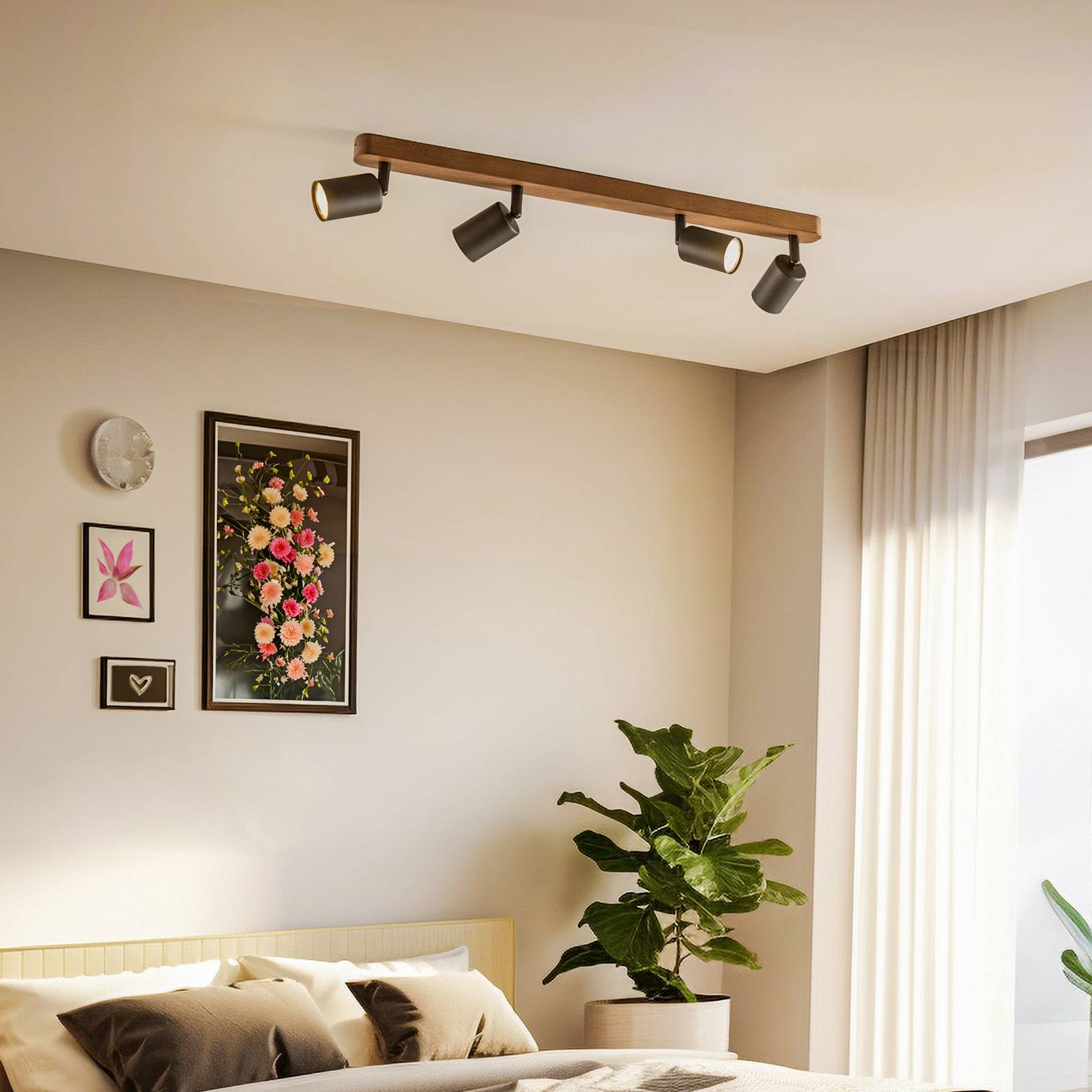 TK Lighting Stropní bodové osvětlení Subrin, ořech, 4 zdroje, Obývací pokoj / jídelna, dřevo, ocel, GU10, 15W, P: 77 cm, L: 18 cm, K: 15cm