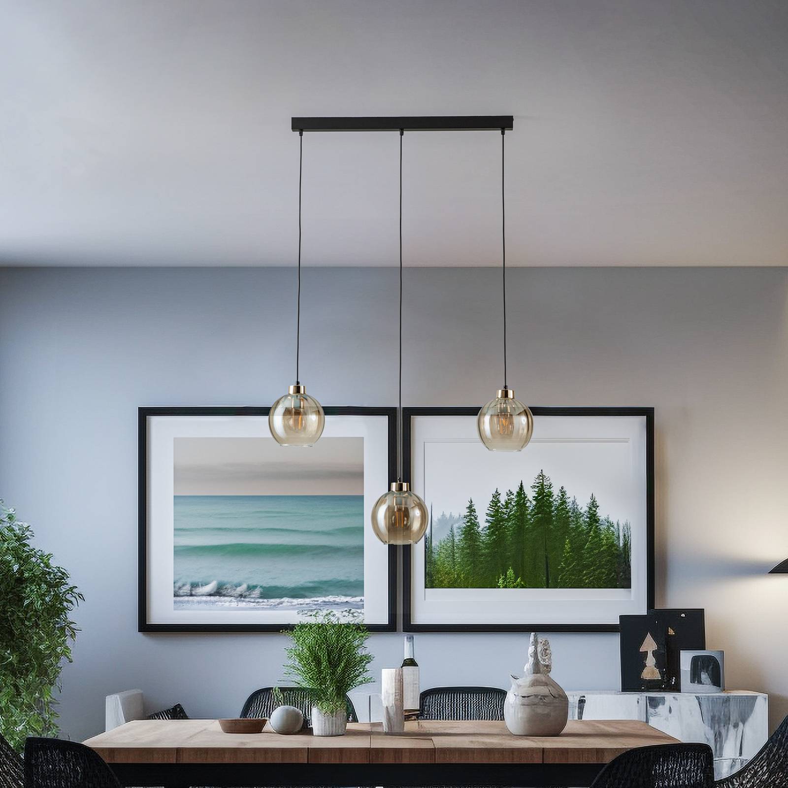 TK Lighting Závěsné světlo Devi, jantar, 3 zdroje, trám, Obývací pokoj / jídelna, ocel, sklo, E27, 15W
