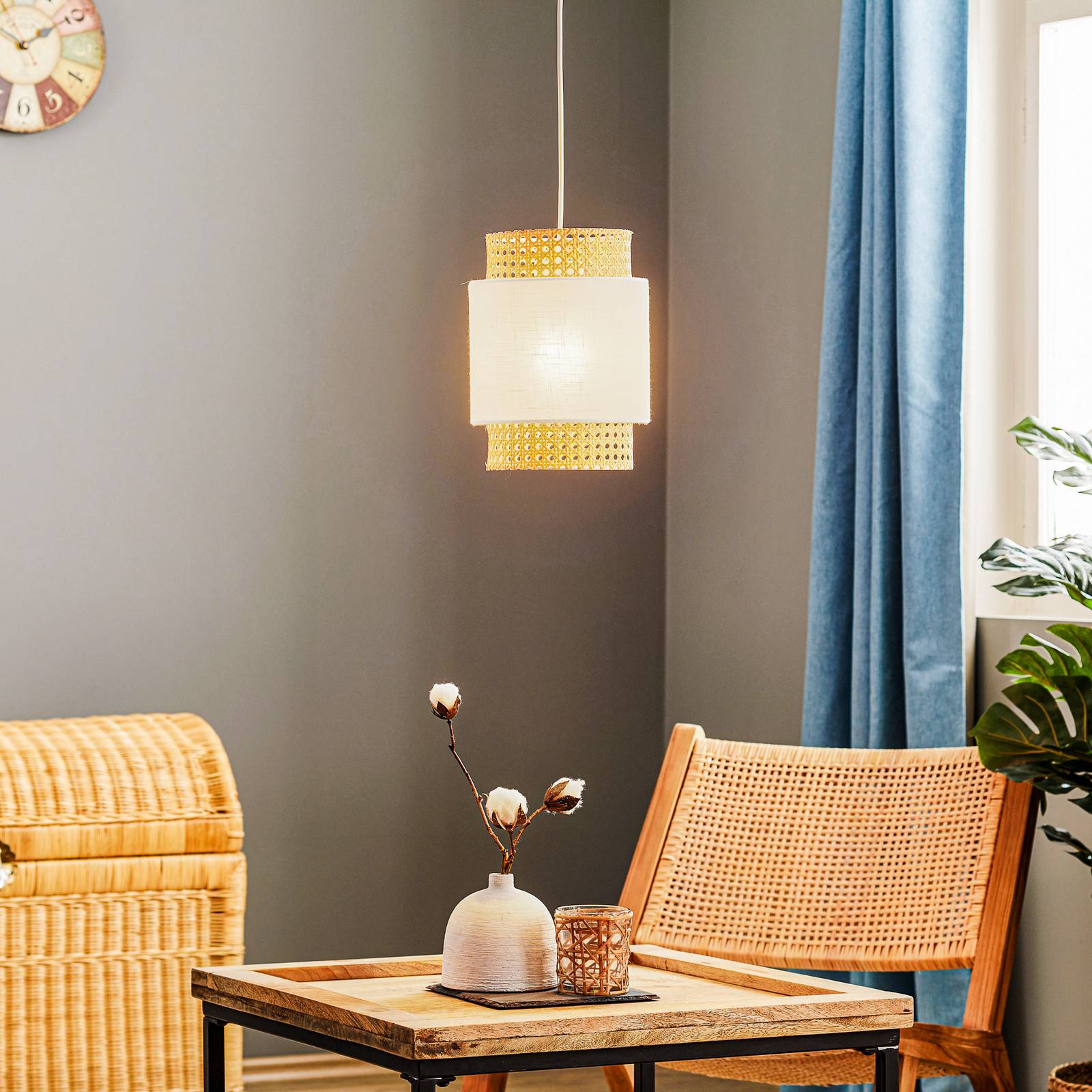 TK Lighting Závěsné svítidlo Boho, bílá/ratan Ø 20 cm, Obývací pokoj / jídelna, Ratan, látka, kov, plast, E27, 60W