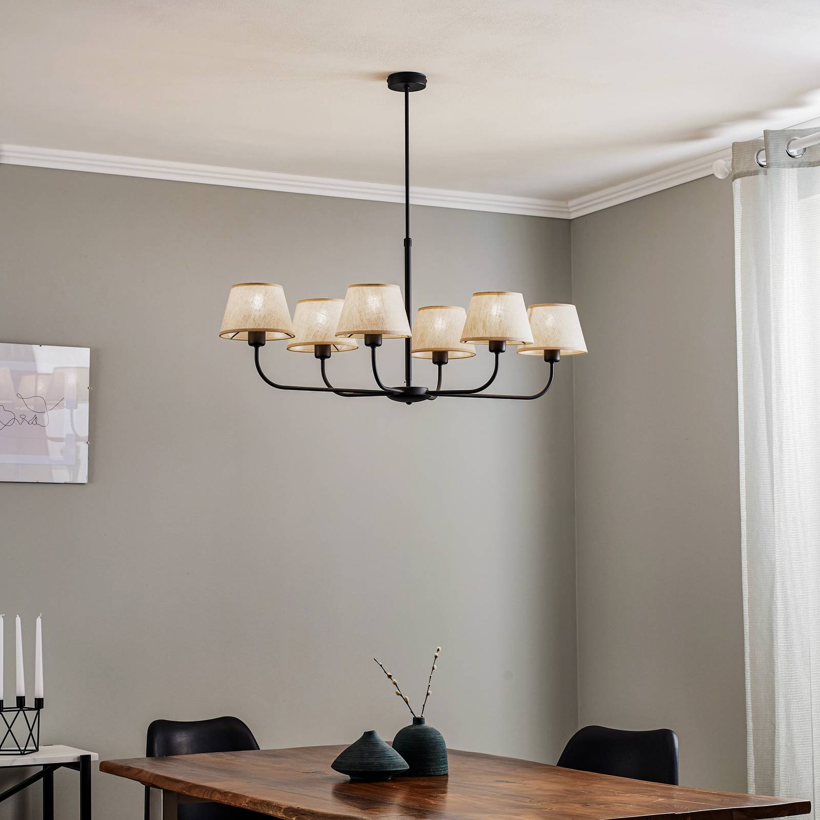 TK Lighting Lustr Chicago, plátěné stínidlo se šesti světly, Obývací pokoj / jídelna, Kov, len, plast, E27, 60W, P: 100 cm, L: 50 cm