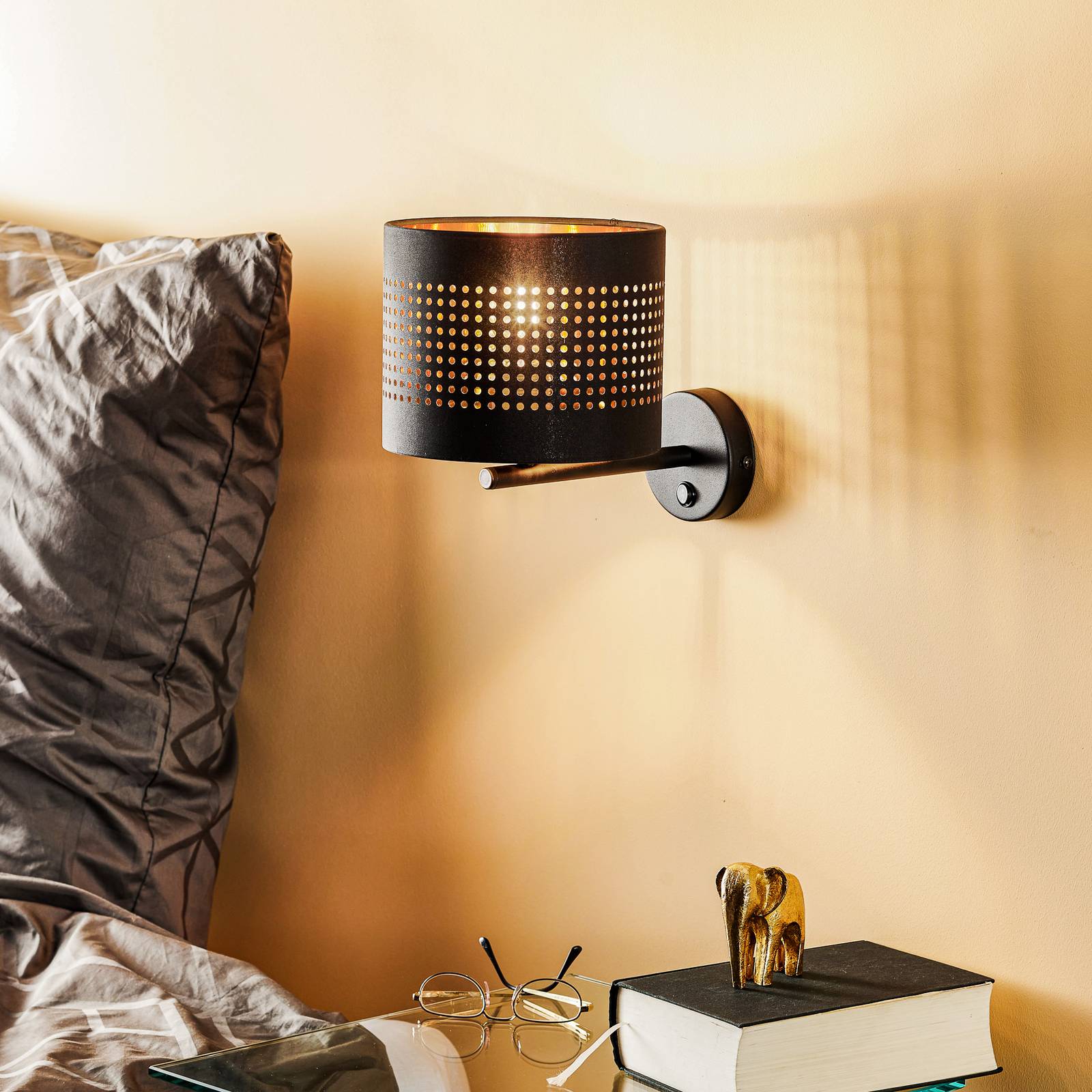 TK Lighting Nástěnné svítidlo Tago, černá/zlatá, Obývací pokoj / jídelna, Kov, textil, E27, 60W, L: 28 cm, K: 28cm