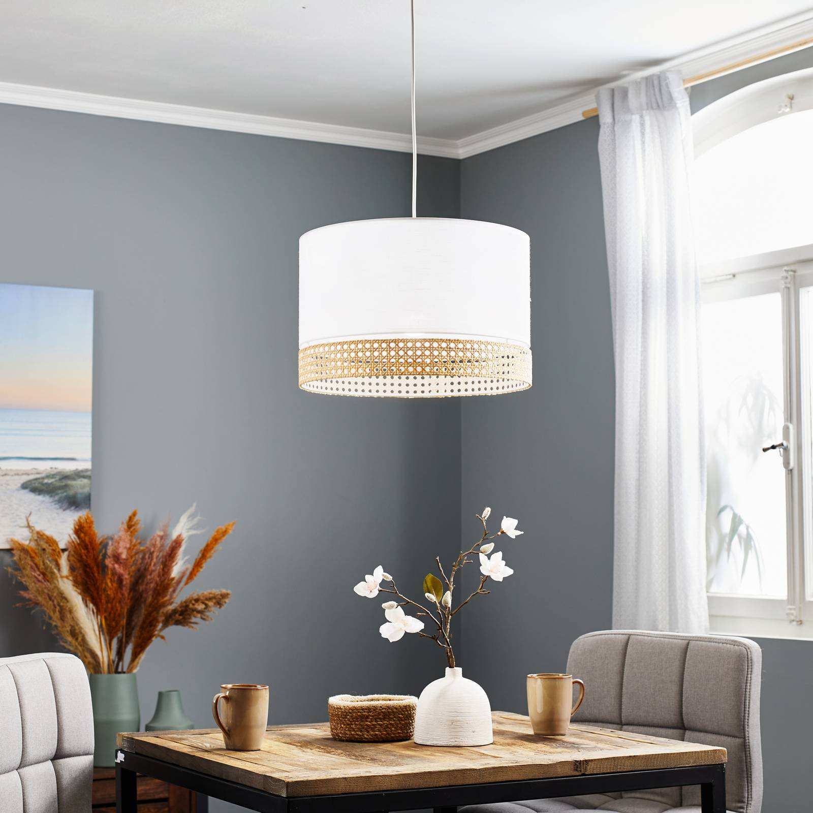TK Lighting Závěsné svítidlo Paglia bílá/ratan jedno světlo Ø 38 cm, Obývací pokoj / jídelna, Tkanina, ratan, kov, plast, E27, 60W