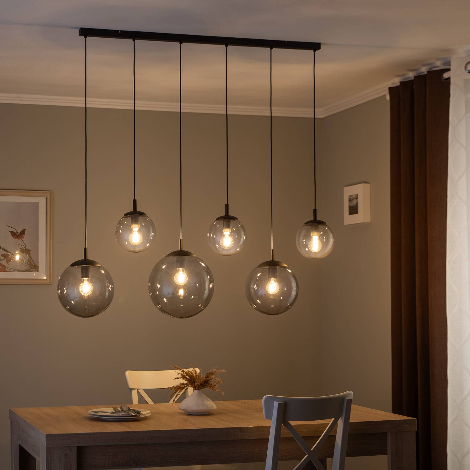 TK Lighting Závěsné svítidlo Esme, sklo, grafitově průhledné, 6 světel, lineární, Obývací pokoj / jídelna, Sklo, ocel, E27, 15W, P: 130 cm, L: 30 cm