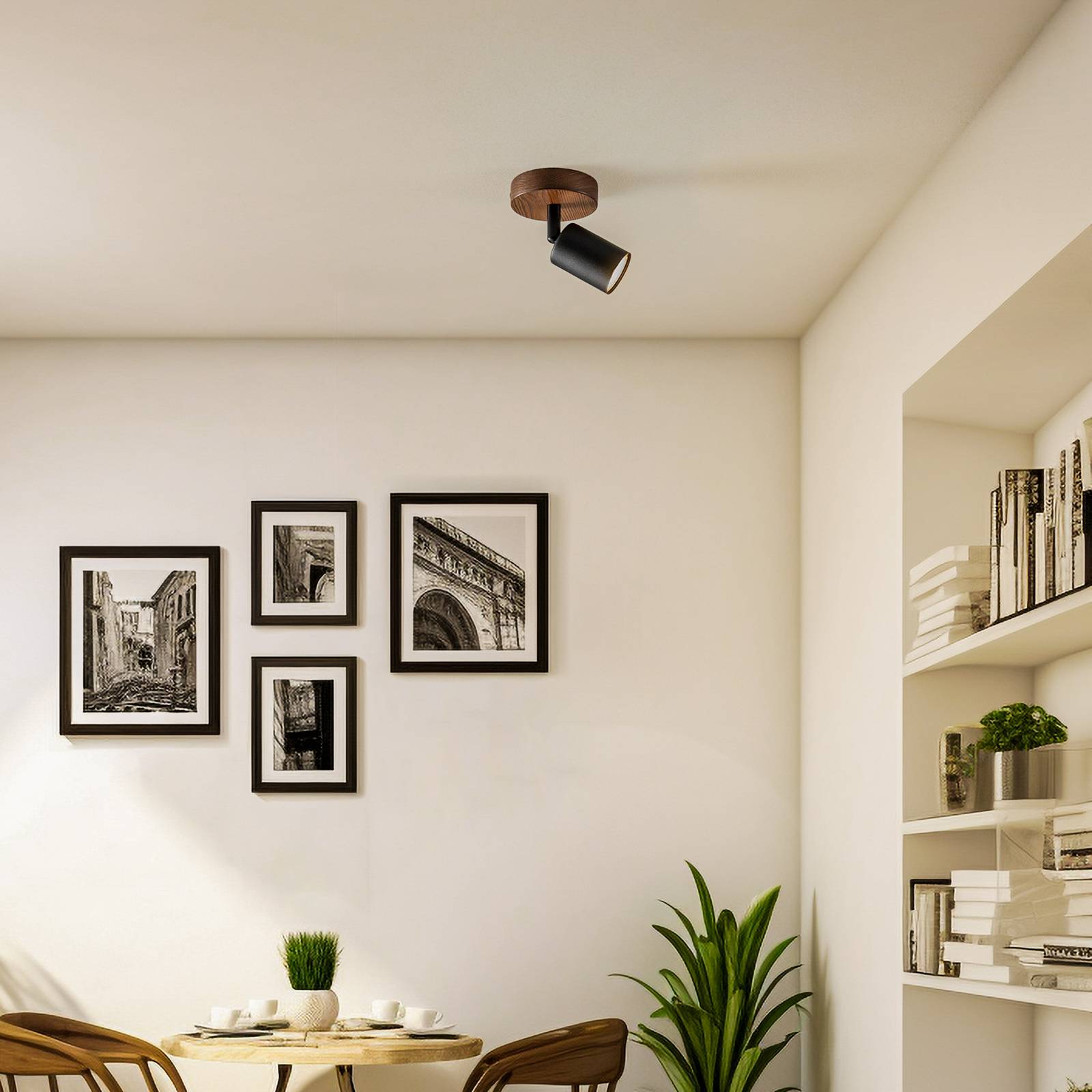 TK Lighting Stropní bodové osvětlení Subrin, ořech, 1 zdroj, Obývací pokoj / jídelna, dřevo, ocel, GU10, 15W, K: 14cm