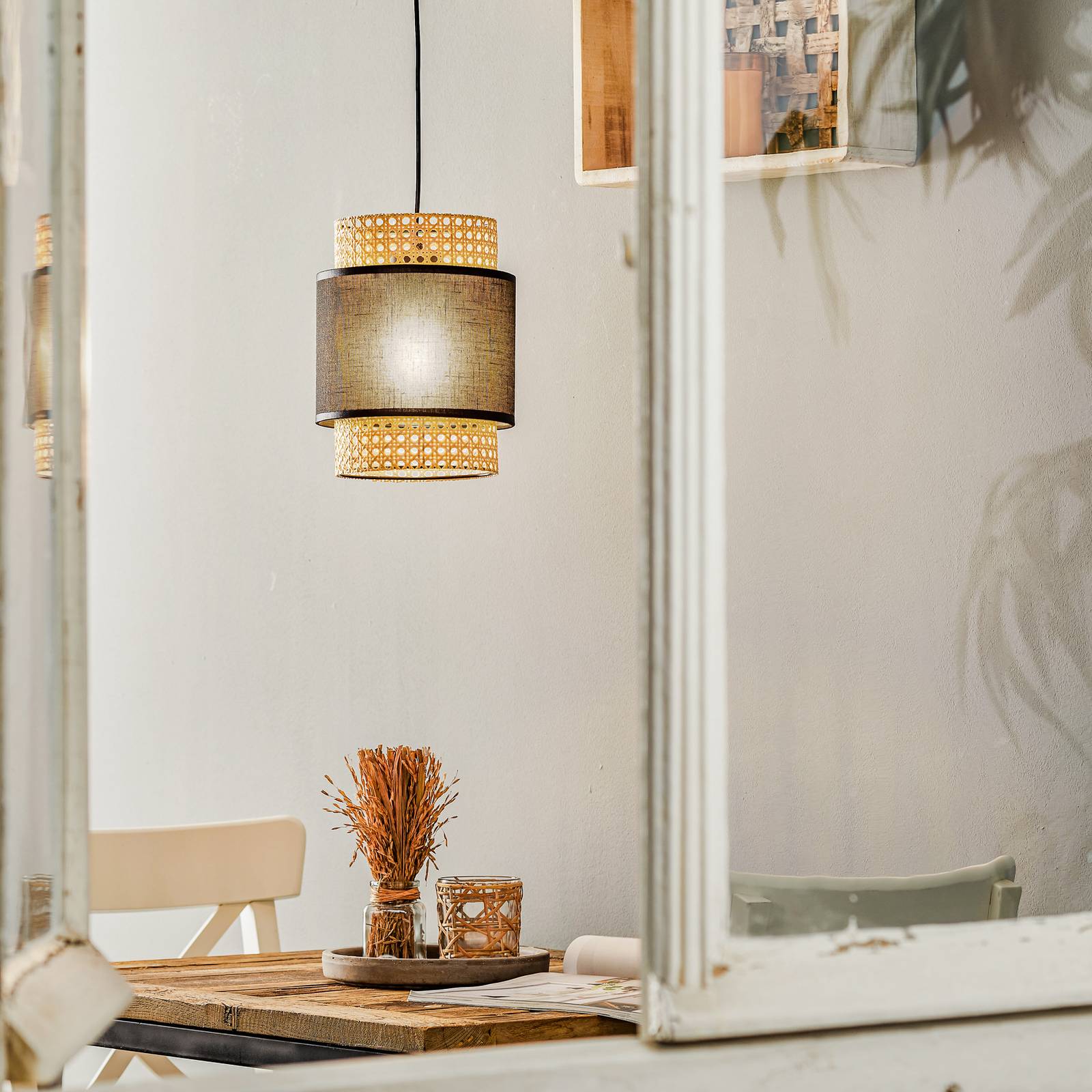 TK Lighting Závěsné svítidlo Boho, černá/ratan Ø 20 cm, Obývací pokoj / jídelna, Ratan, látka, kov, plast, E27, 60W