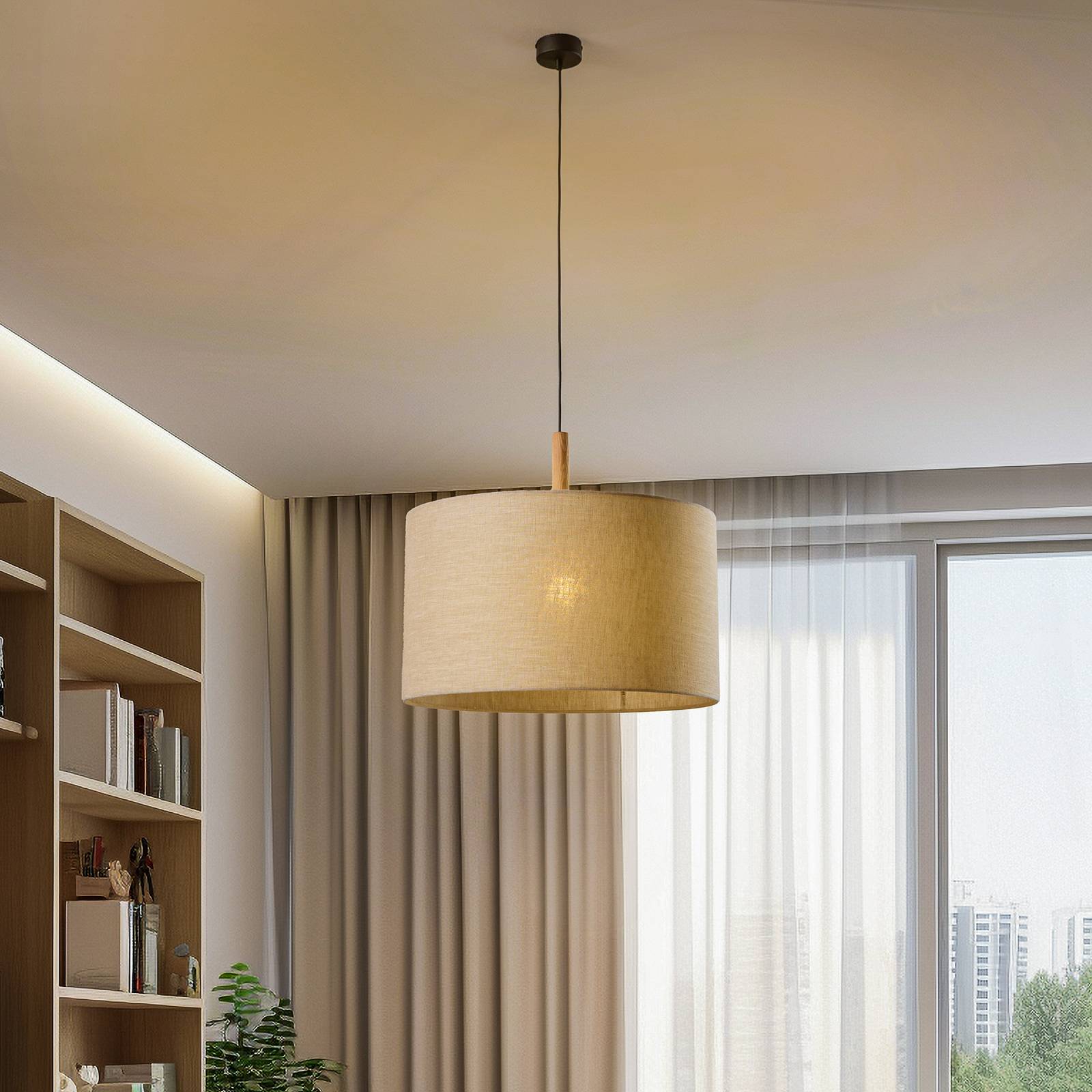 TK Lighting závěsné světlo Deva Nature, 1 zdroj, textil, Obývací pokoj / jídelna, bavlna, dřevo, E27, 15W, K: 30cm