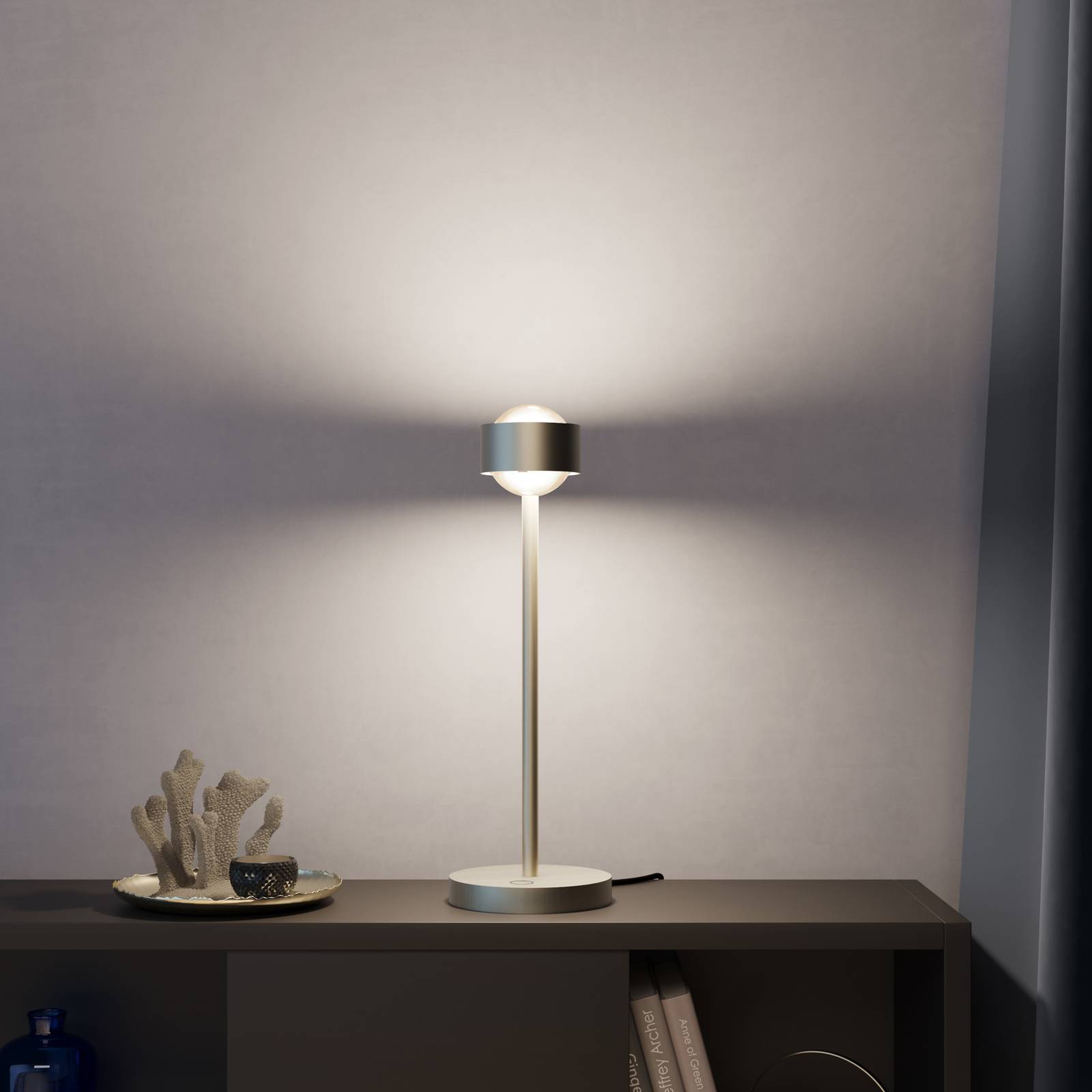 Top Light Puk! 80 Eye Table LED, matné čočky, nikl matný, Obývací pokoj / jídelna, hliník zinek, tkanina, sklo, 12W, K: 37cm