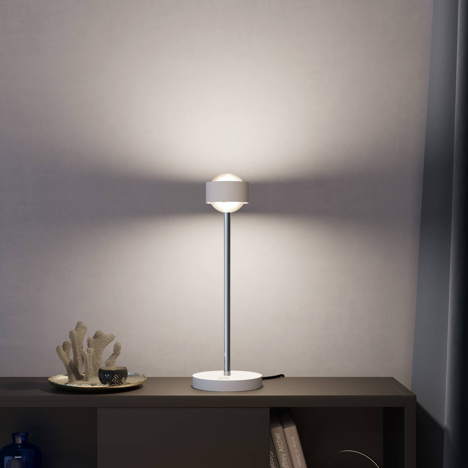 Top Light Puk! 80 Eye Table LED matné čočky bílá matná/chrom, Obývací pokoj / jídelna, hliník zinek, tkanina, sklo, 12W, K: 37cm