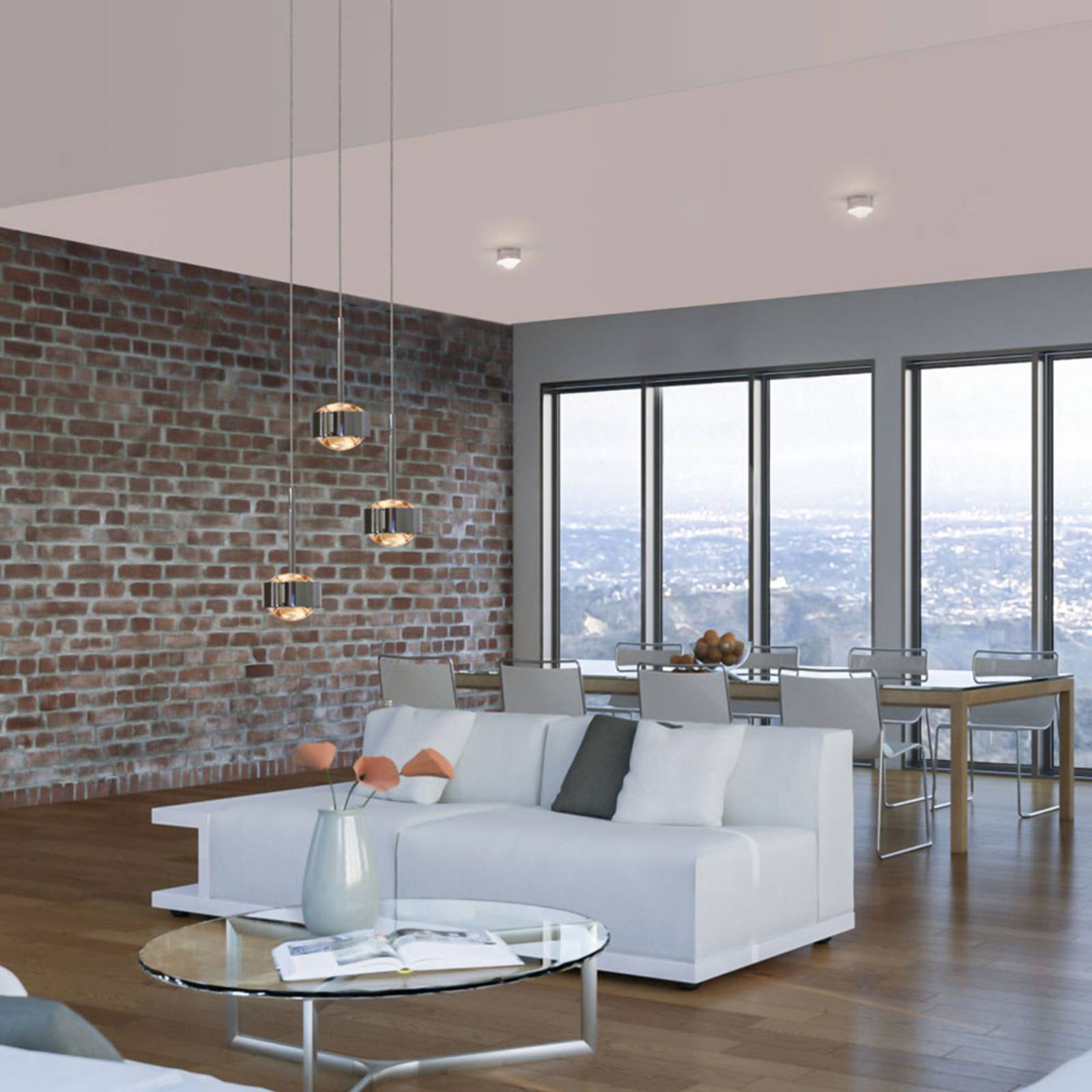 Top Light LED závěsné světlo Puk Maxx Drop Trio, chrom, Obývací pokoj / jídelna, kov, sklo, G9, 3W, K: 5cm