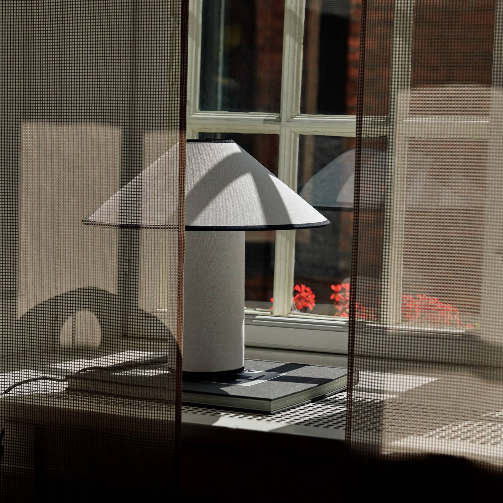 &Tradition Colette ATD6 stolní lampa, bílá/černá, Obývací pokoj / jídelna, Polyester, PVC, hliník, železo, E14, 40W, K: 30cm