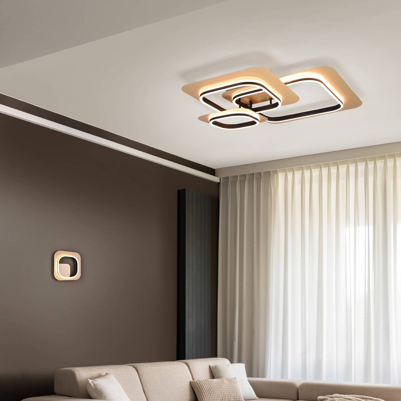 Trio Lighting LED stropní světlo Lugo, zlato-černá, 74×74 cm, Obývací pokoj / jídelna, kov, 50W, P: 74 cm, L: 74 cm, K: 13cm