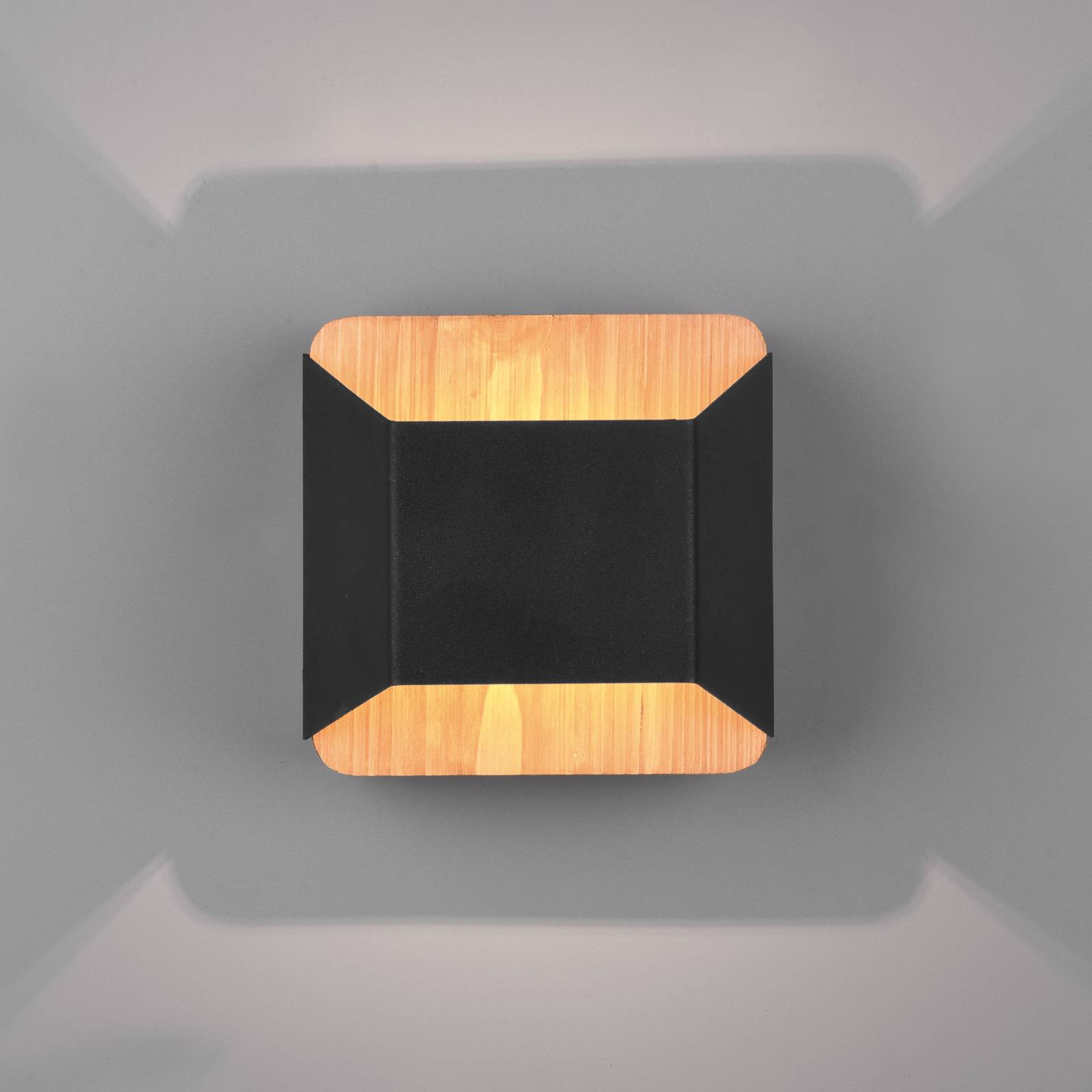 Trio Lighting Nástěnné svítidlo Arino LED, černé, šířka 12, 2 cm, Obývací pokoj / jídelna, Kov, dřevo, 4.3W, L: 12.2 cm, K: 12cm