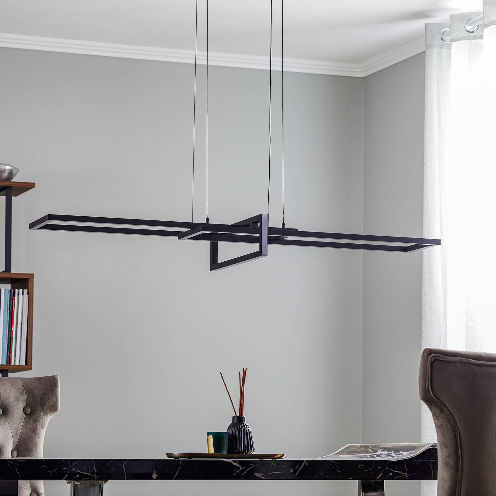 Trio Lighting LED závěsné světlo Salinas, 3 000 K, černá matná, Obývací pokoj / jídelna, kov, 34W, P: 110 cm, L: 40 cm