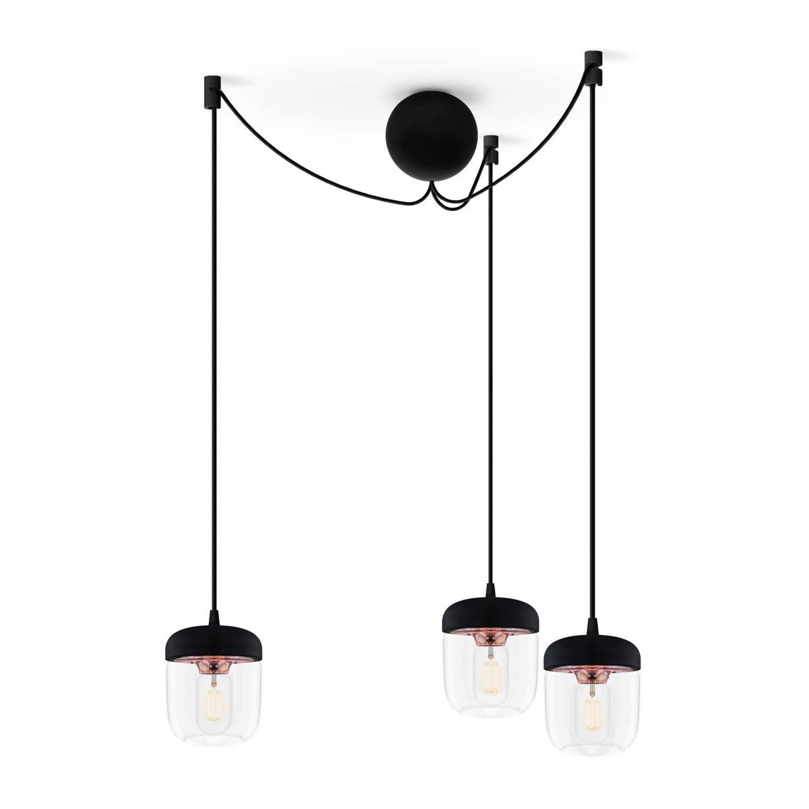 UMAGE Acorn závěsné světlo 3zdr. černá/měď, Obývací pokoj / jídelna, sklo, silikon, hliník, plast, E27, 15W