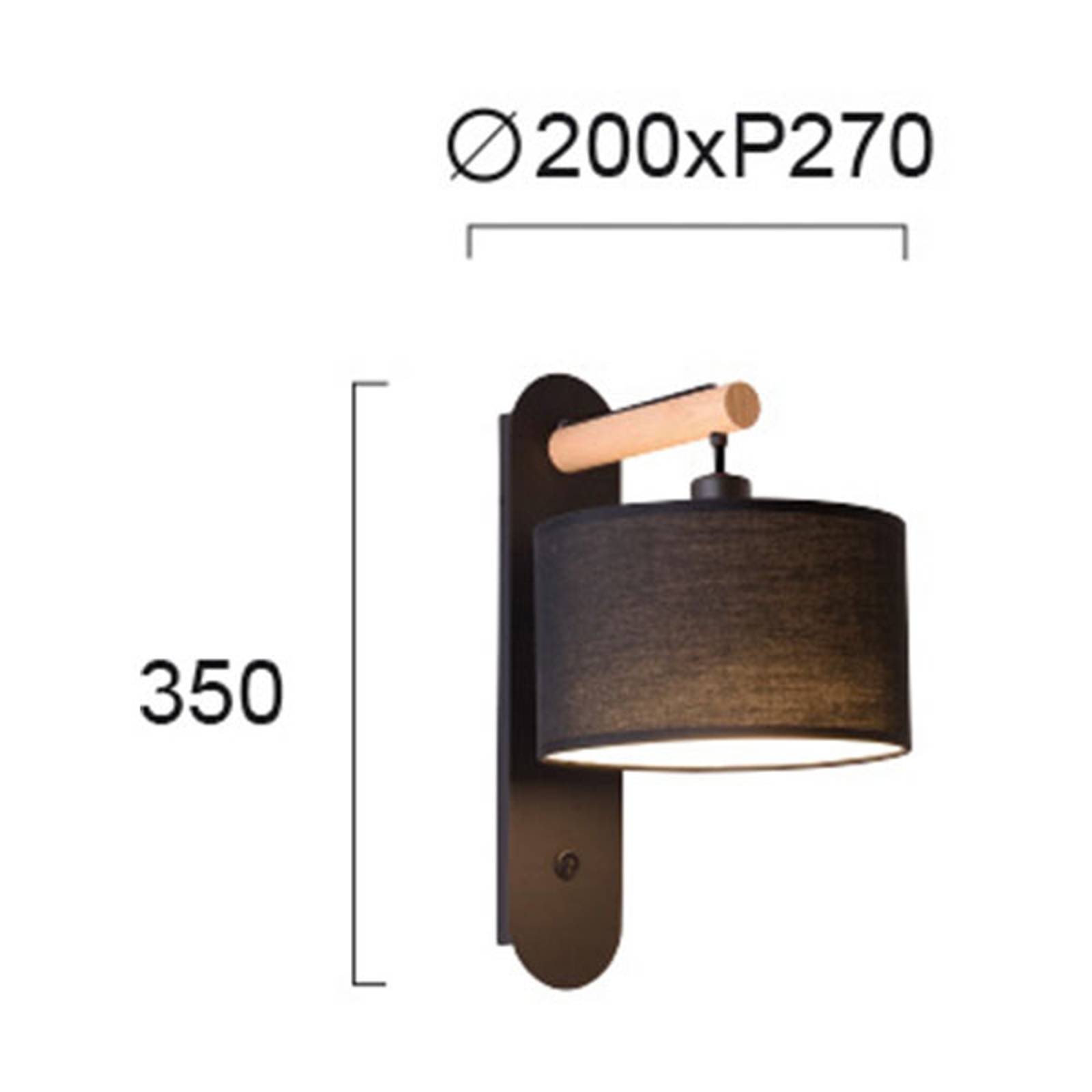 Viokef Nástěnné světlo Romeo s textilním stínidlem, černé, Obývací pokoj / jídelna, textil, plast, dřevo, ocel, E14, 40W, L: 20 cm, K: 35cm