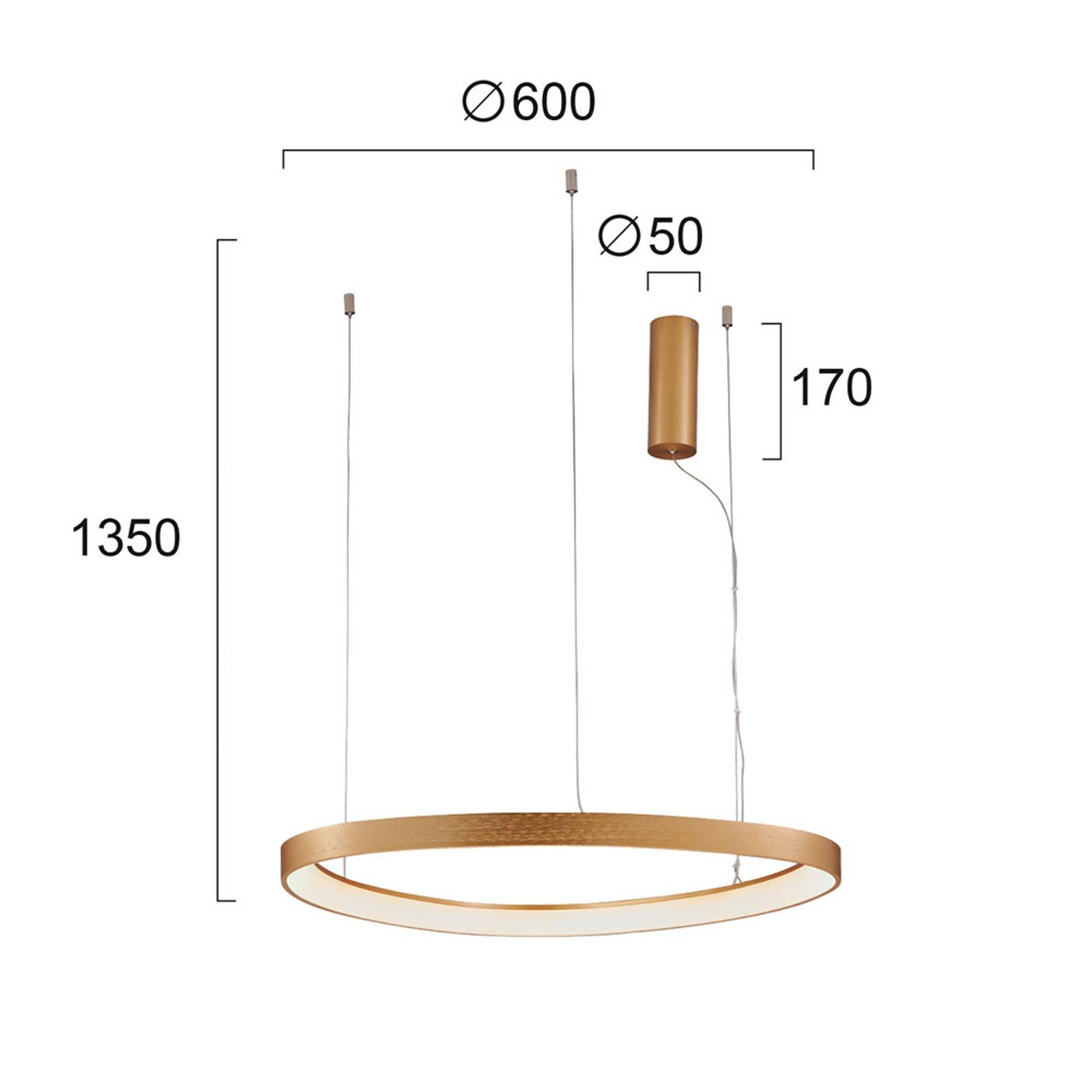 Viokef LED závěsné světlo Loop, zlaté, Ø 60 cm, Obývací pokoj / jídelna, hliník, 48W