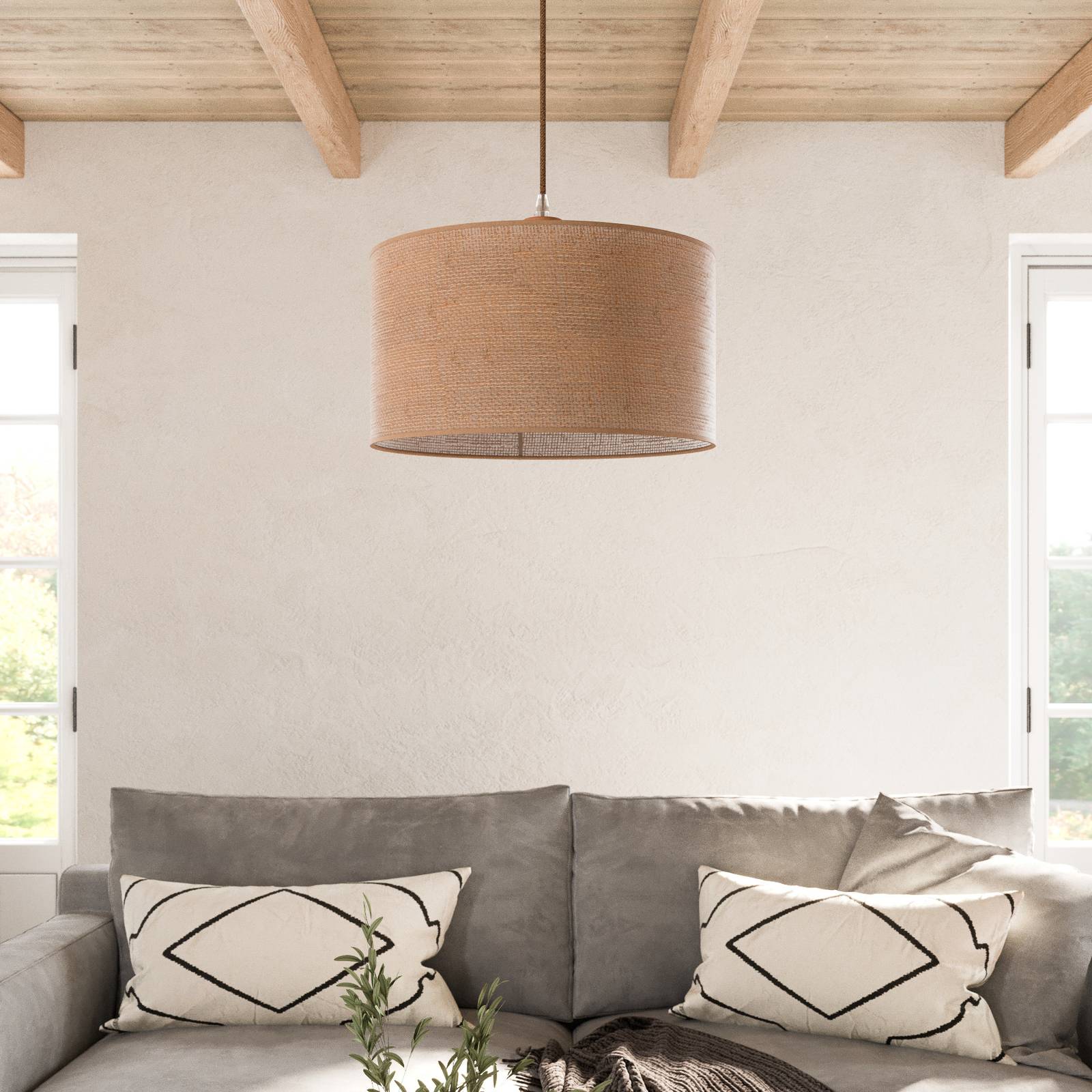 Viokef Závěsné světlo Senso, kulaté, Ø 40 cm, Obývací pokoj / jídelna, len, dřevo, E27, 60W, K: 22cm