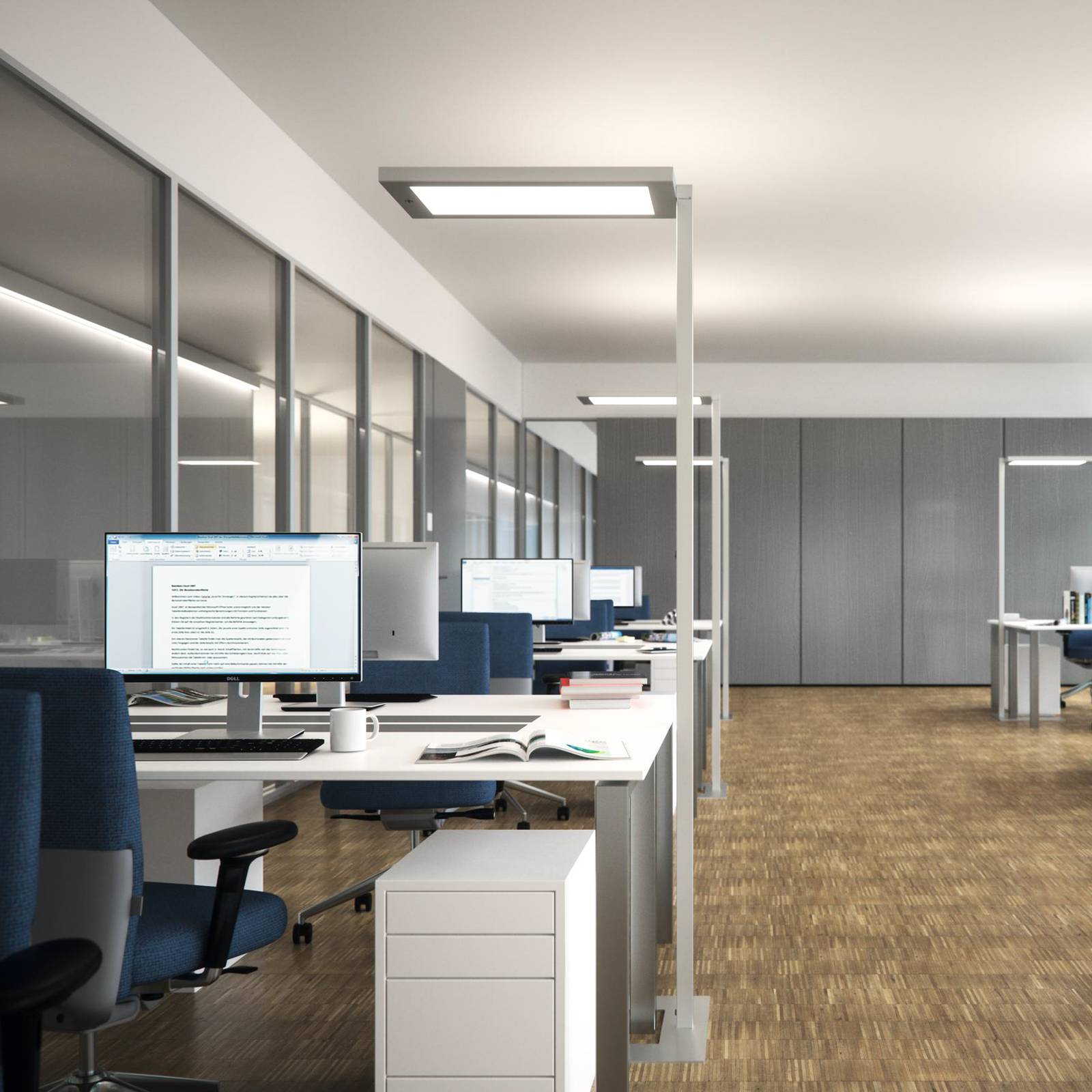 Waldmann Stojací lampa LED Lavigo Core DPS 12500/840/R/G1, stříbrná, senzor, Pracovna / kancelář, Ocel, polykarbonát, 85W, L: 32 cm, K: 203.3cm