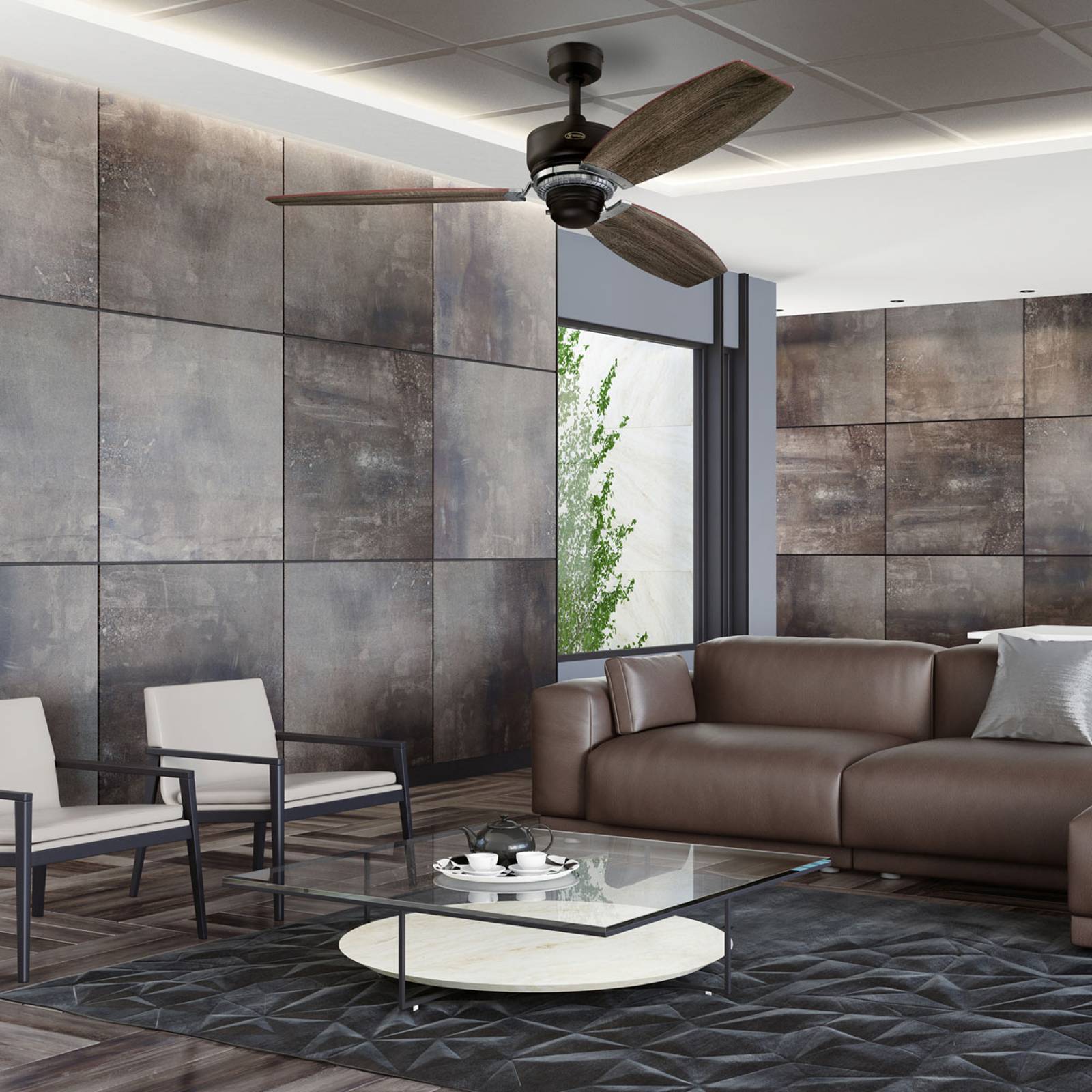 Westinghouse Welford stropní ventilátor, bronz, Obývací pokoj / jídelna, kov, dřevo, K: 43cm