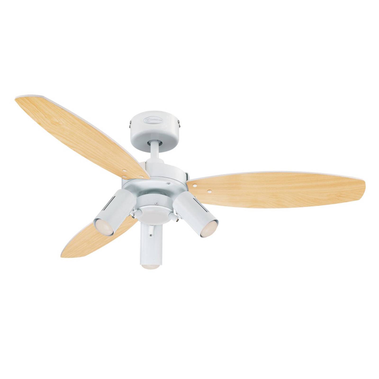 Westinghouse Ventilátor Portland Ambiance, bílý, Obývací pokoj / jídelna, ocel, dřevo, sklo, E27, 60W, K: 42cm